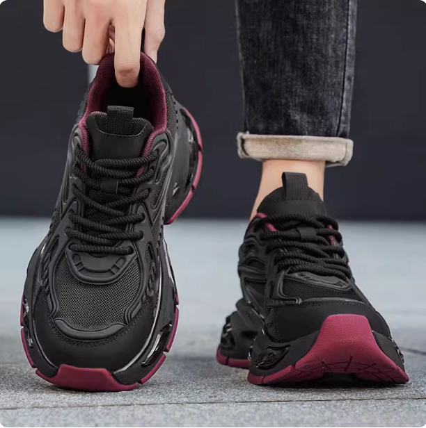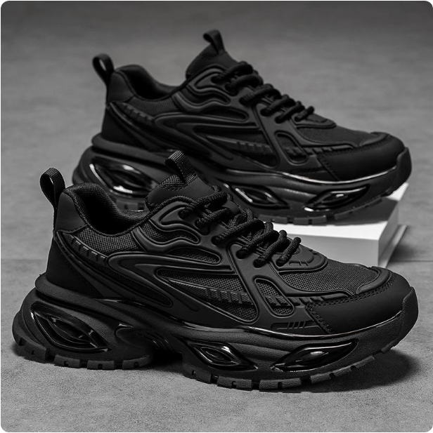 男鞋冬季气垫减震跑步运动鞋加绒棉鞋厚底增高纯黑色休闲老爹潮鞋