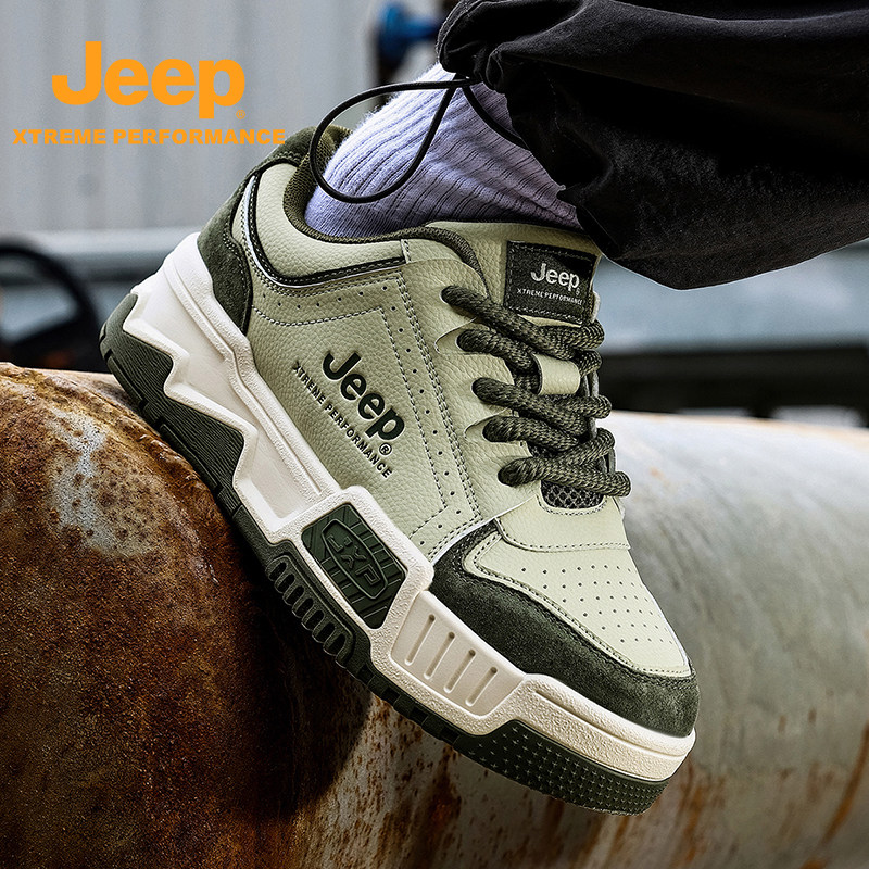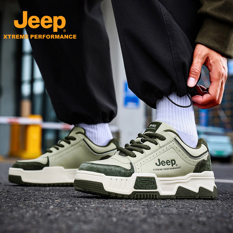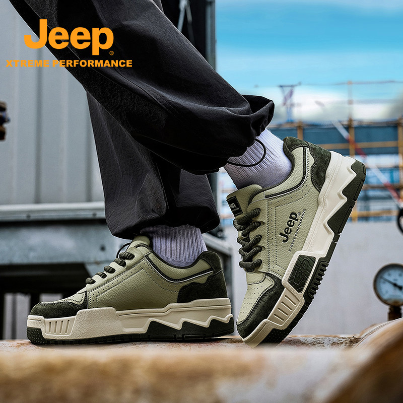 Jeep春季新款厚底男士板鞋防滑耐磨登山鞋子户外潮流旅游休闲鞋