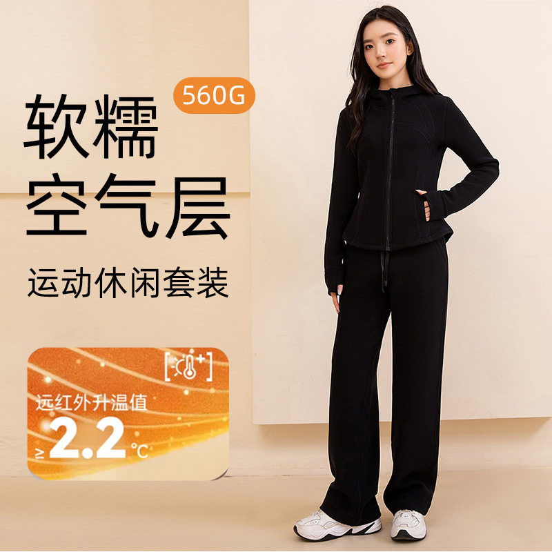 2025新款秋冬修身显瘦休闲卫衣女连帽高级感加厚瑜伽健身运动套装