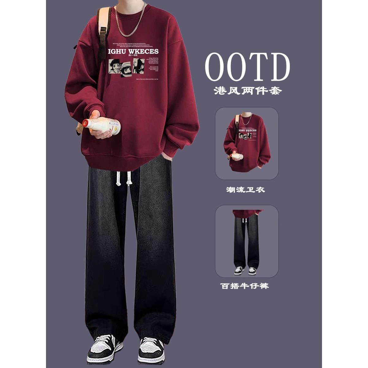 重磅卫衣男春秋青少年男装帅气学生潮流套装酷帅男生时髦加绒衣服