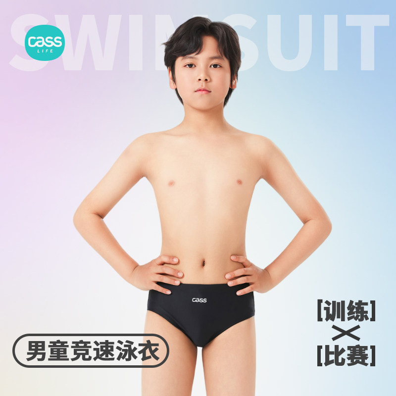 佳适儿童男童泳裤纯色小平角中大童舒适速干专业学生训练游泳短裤