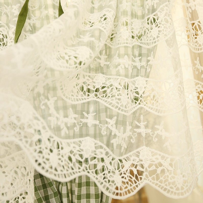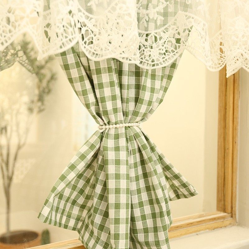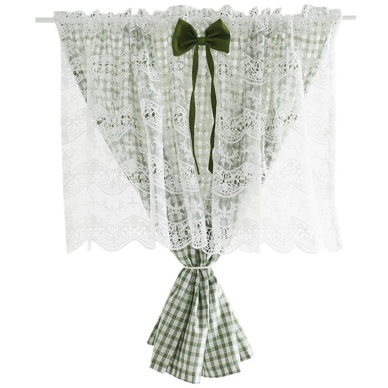 鸢尾乡旅窗帘半帘美式门帘绣花穿杆帘柜帘防尘帘咖啡帘半遮光格子