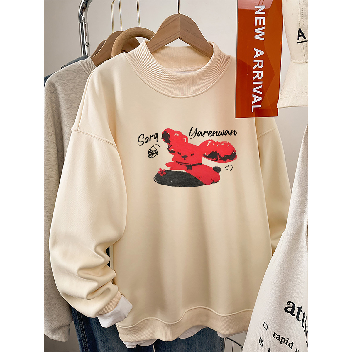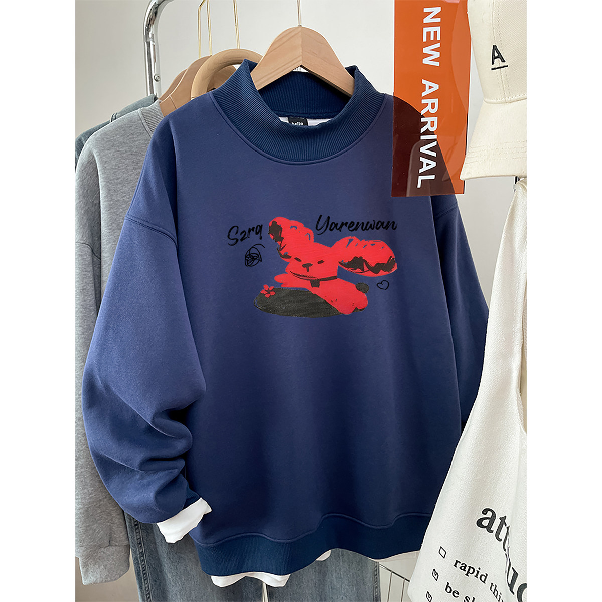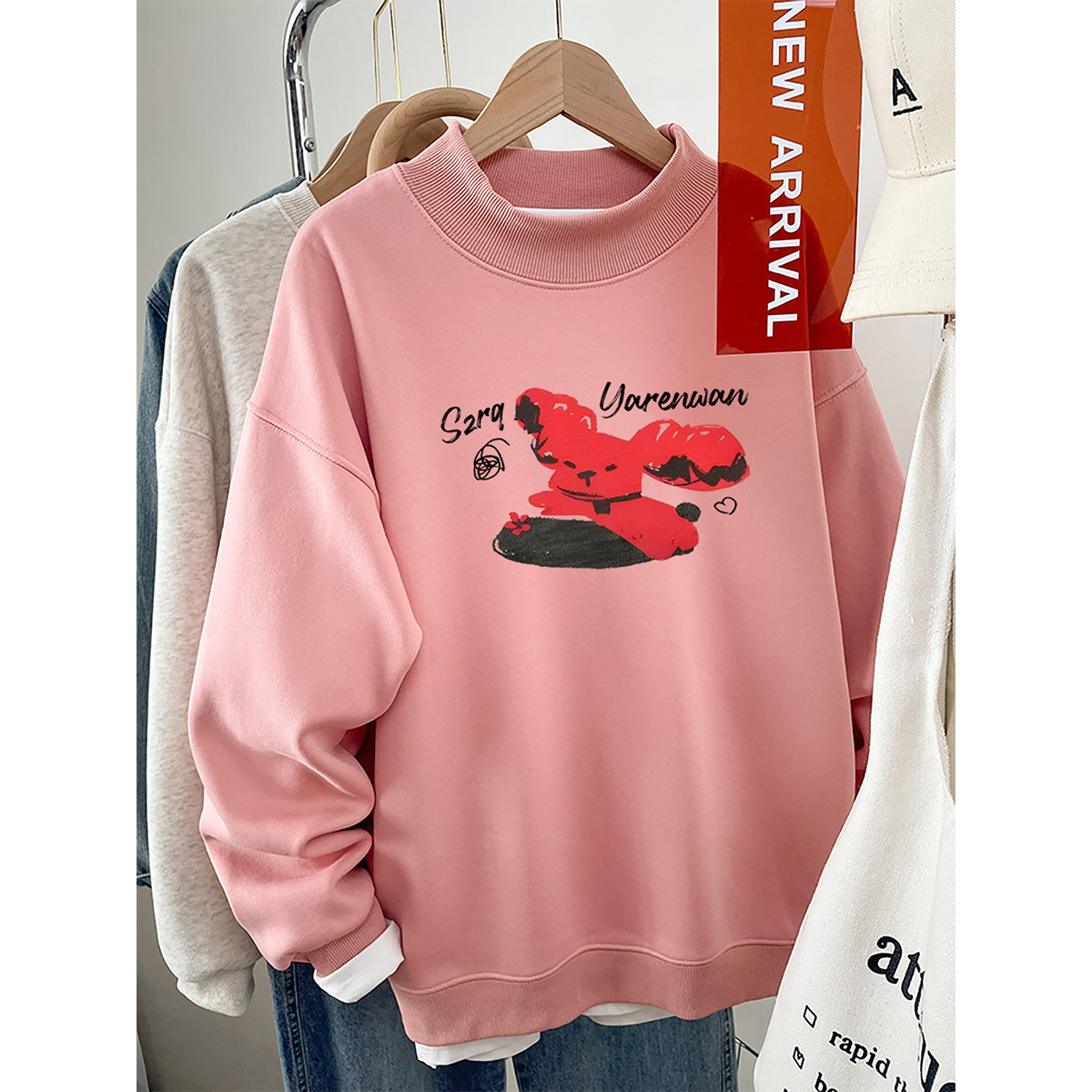 半高领卫衣女款加厚无帽2026新款大码胖mm秋冬季加绒宽松长袖上衣