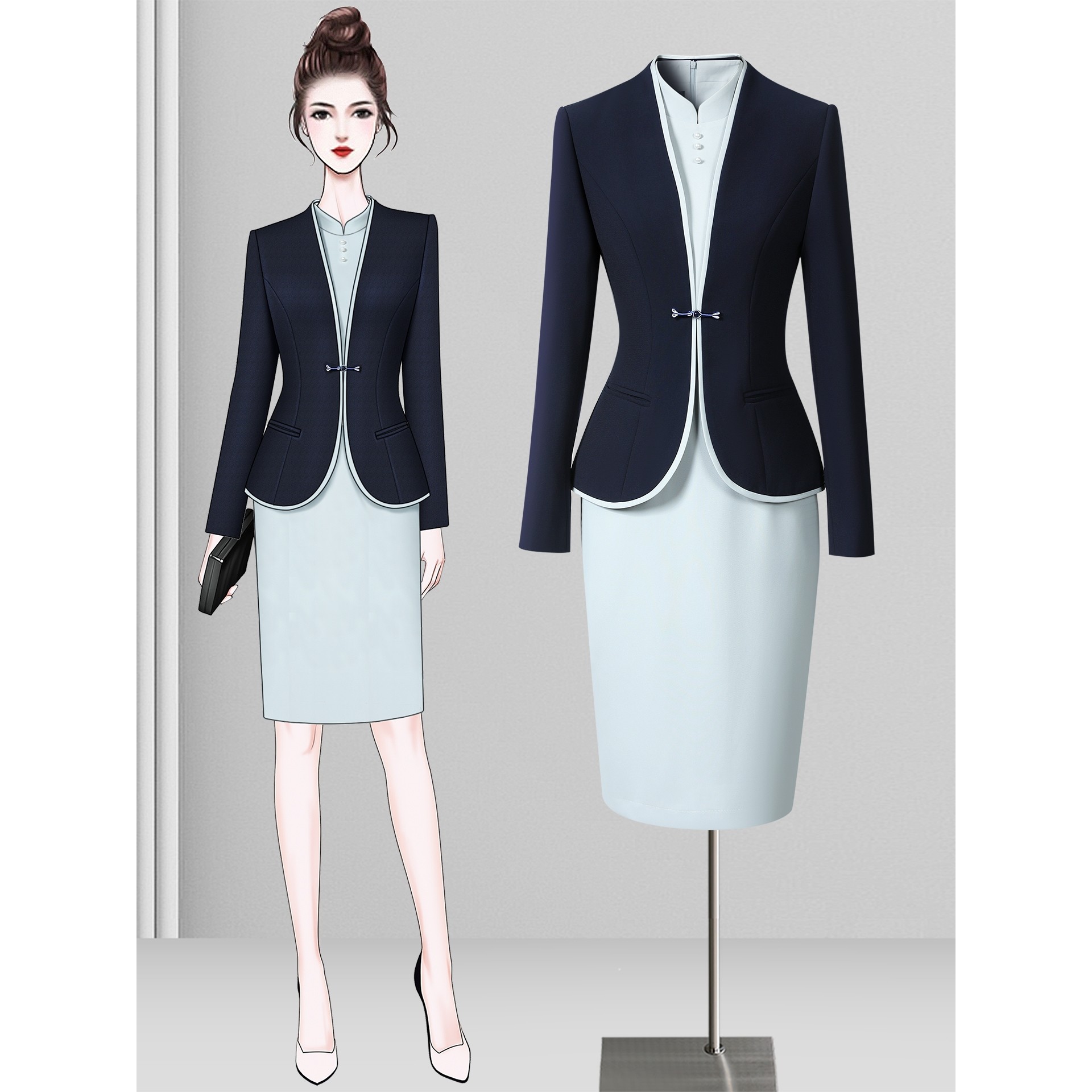 高端职业套装女秋季气质减龄连衣裙中式茶楼养生会所美容院工作服