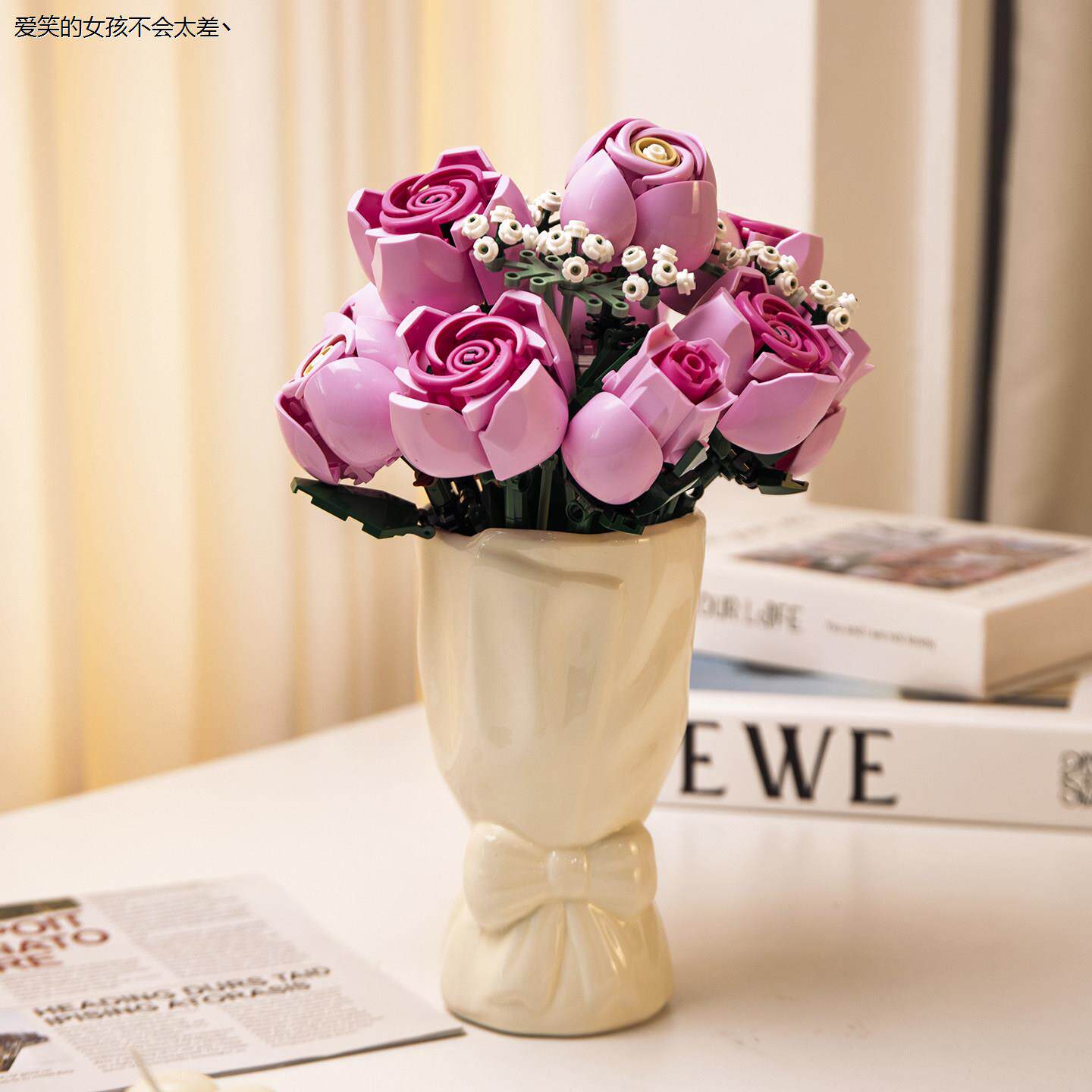 永生花束拼装积木花束花瓶diy手工材料包装饰摆件送闺蜜生日LHAL4