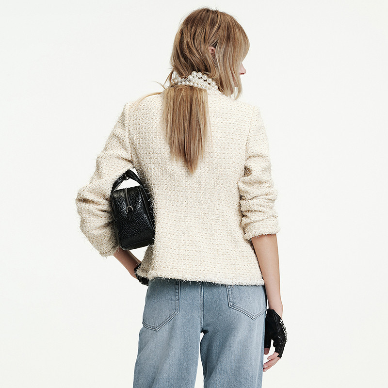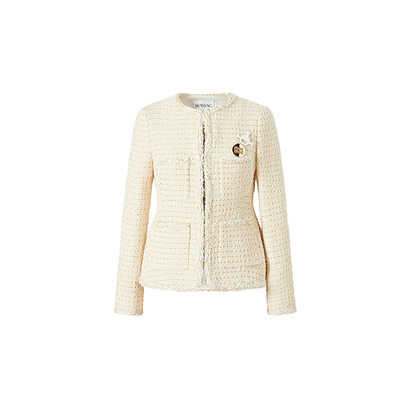 商场同款 摩萨克2026春新款白金小香风粗花呢收腰中长款外套女