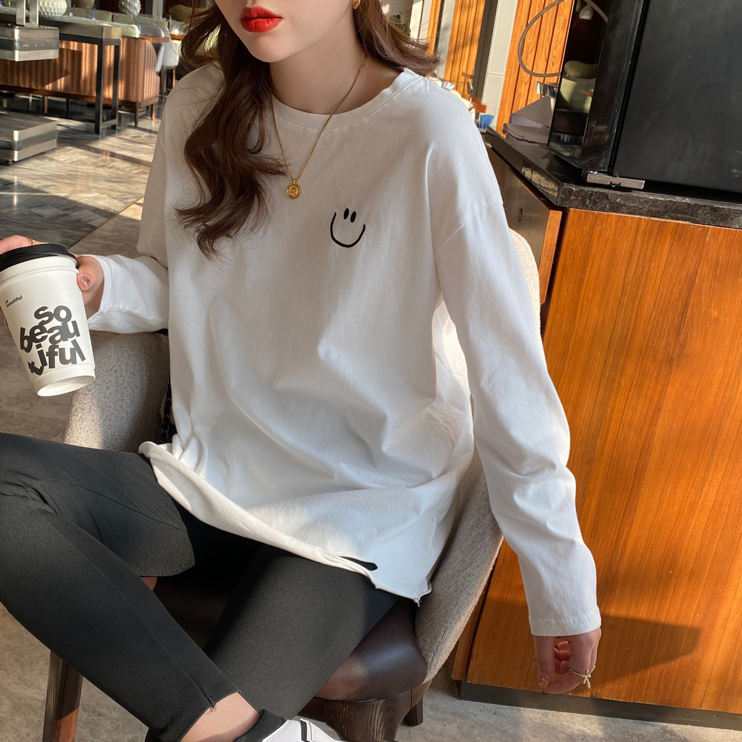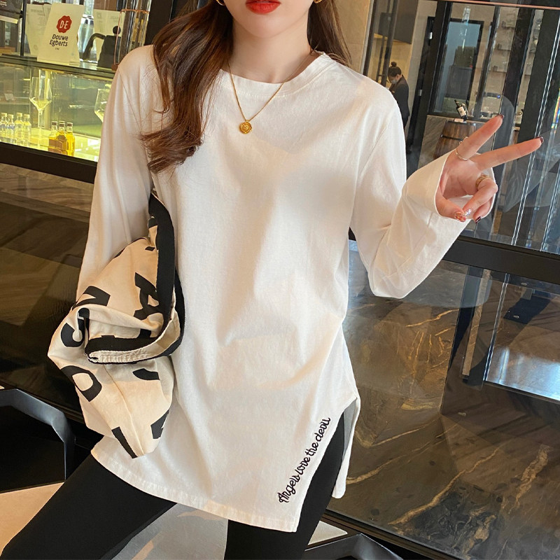 白色长袖t恤女中长款打底衫内搭2026春装新款卫衣宽松遮屁股上衣