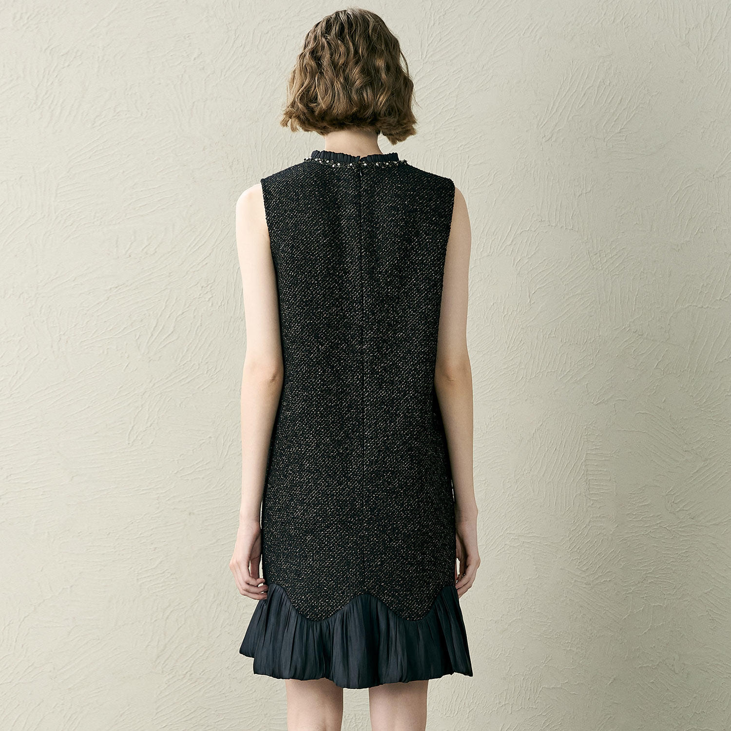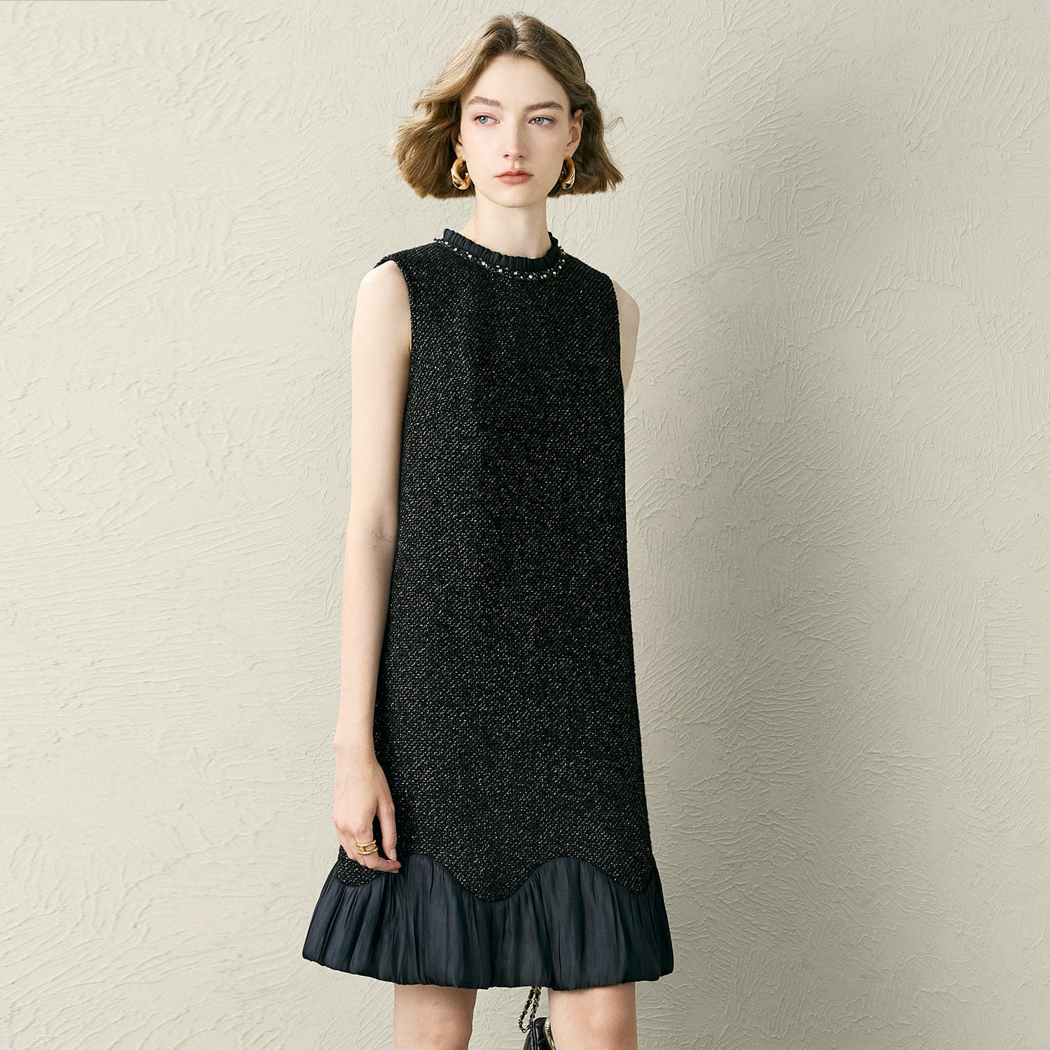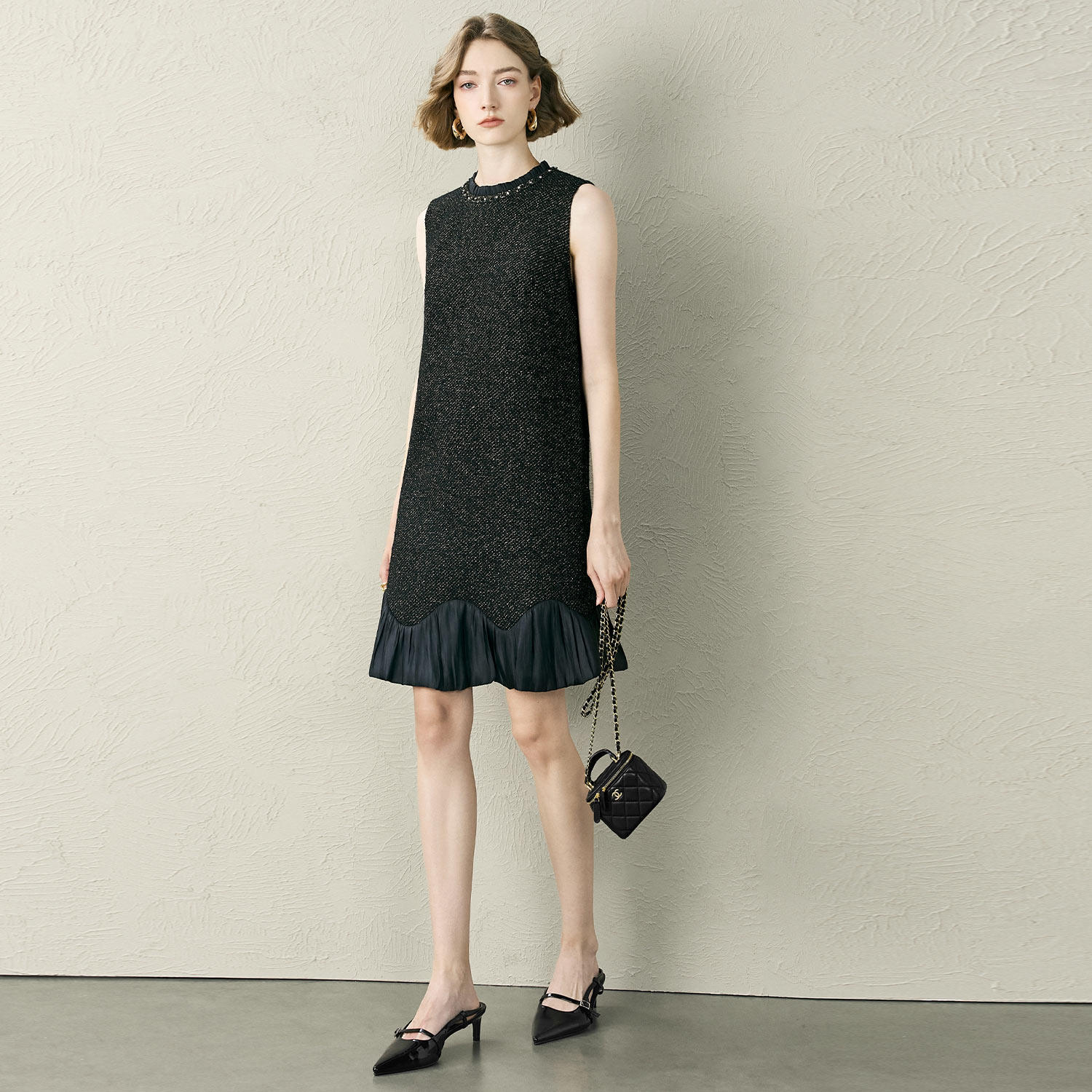 颜域毛呢背心连衣裙女2025冬季新款设计感拼接气质轻熟风短款裙子