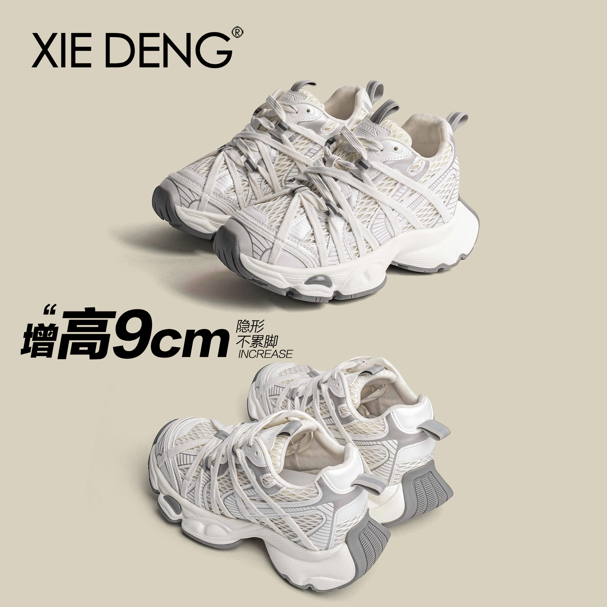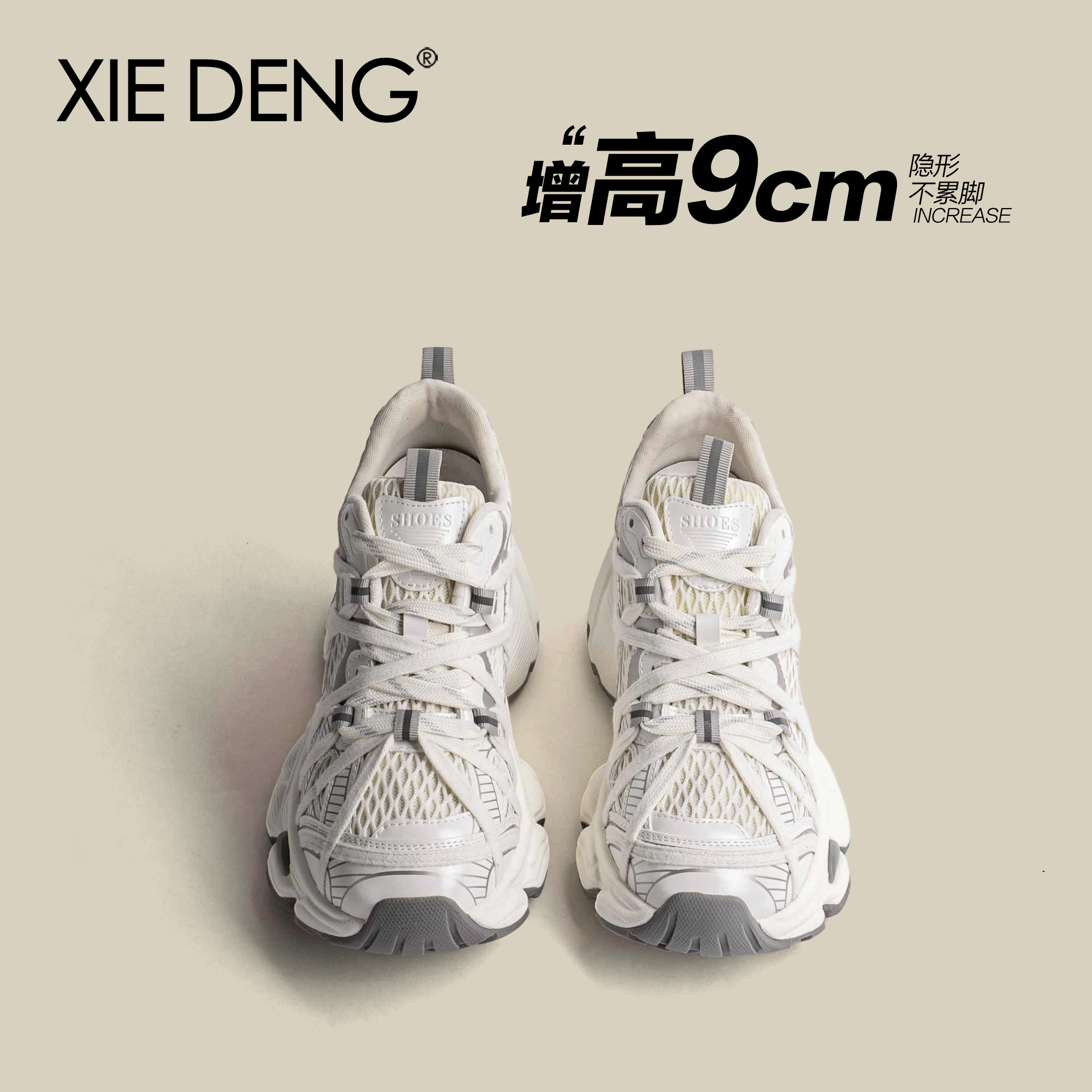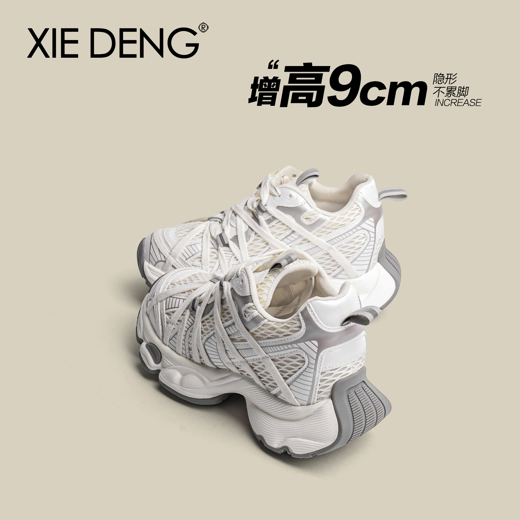 「鞋登」9CM白色老爹鞋女小个子增高2026新款厚底显瘦网面运动鞋