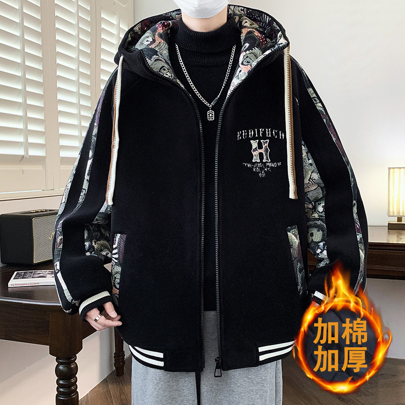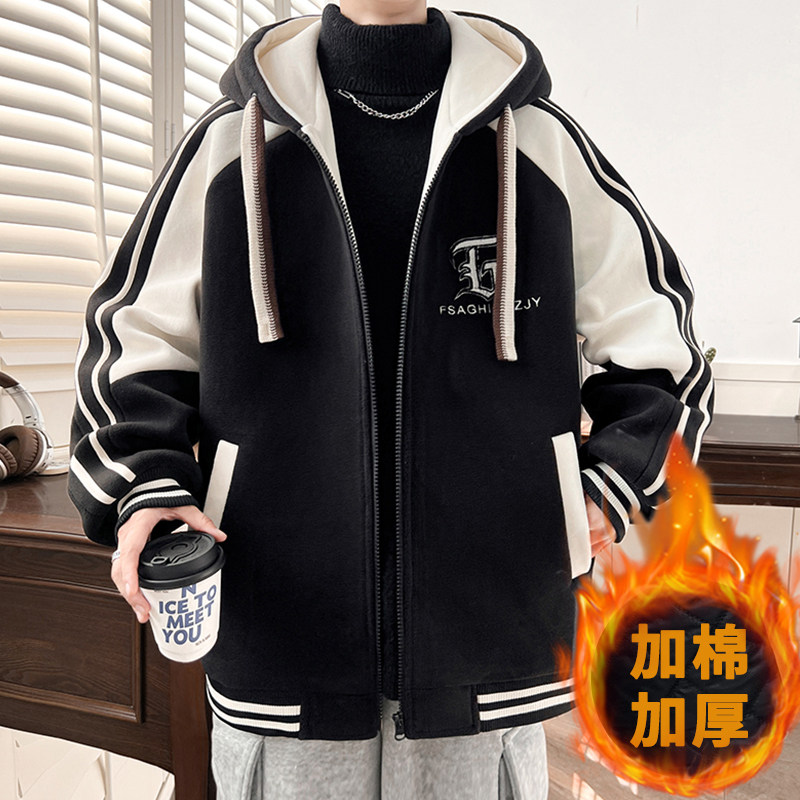 秋冬季青少年羊羔毛绒棉服外套男孩棉衣初中高中学生大童冬装棉袄