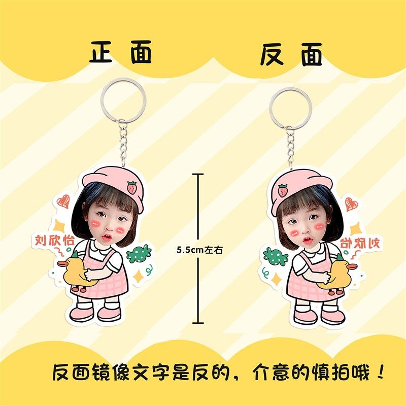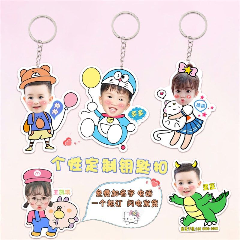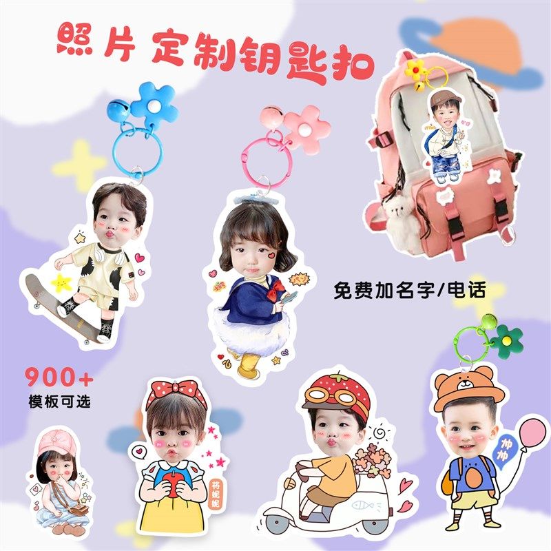 照片定制钥匙扣幼儿园书包挂件卡通头像名字电话防走丢钥匙链礼品