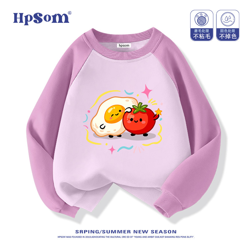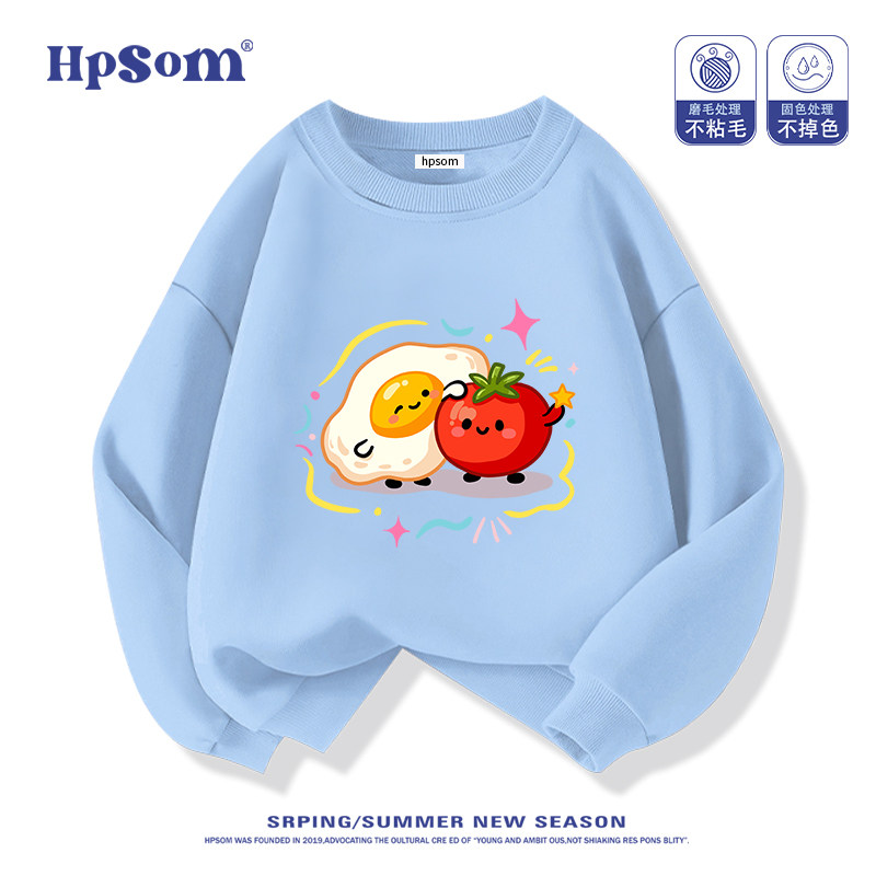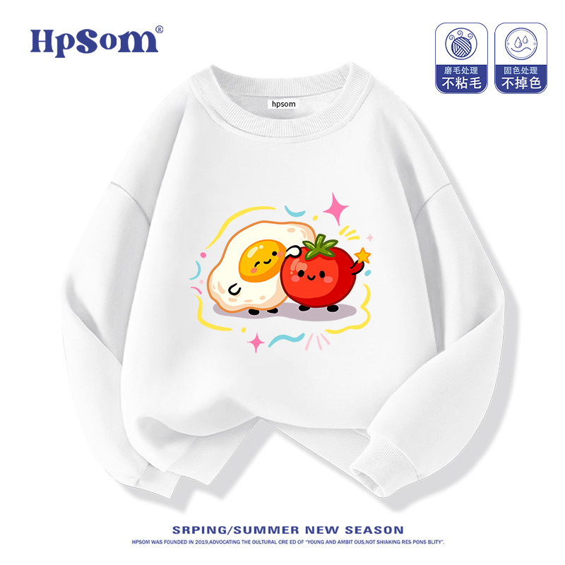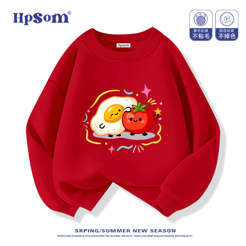 番茄鸡蛋儿童黑色圆领卫衣2026新款秋冬季男女孩中大童装加绒加厚