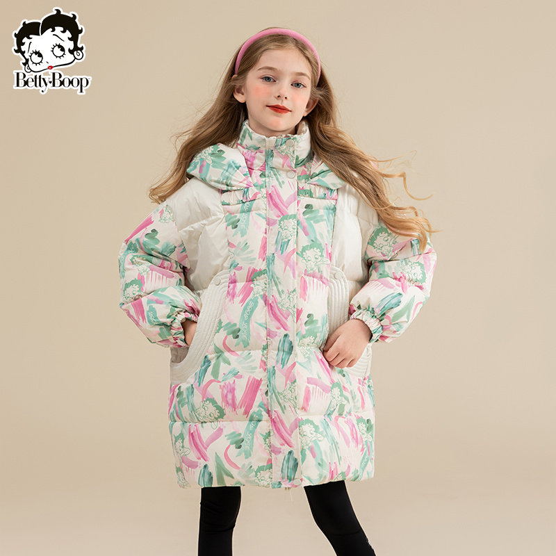 贝蒂女大童羽绒服冬季加厚鹅绒外套中长款2026新款儿童中大童上衣