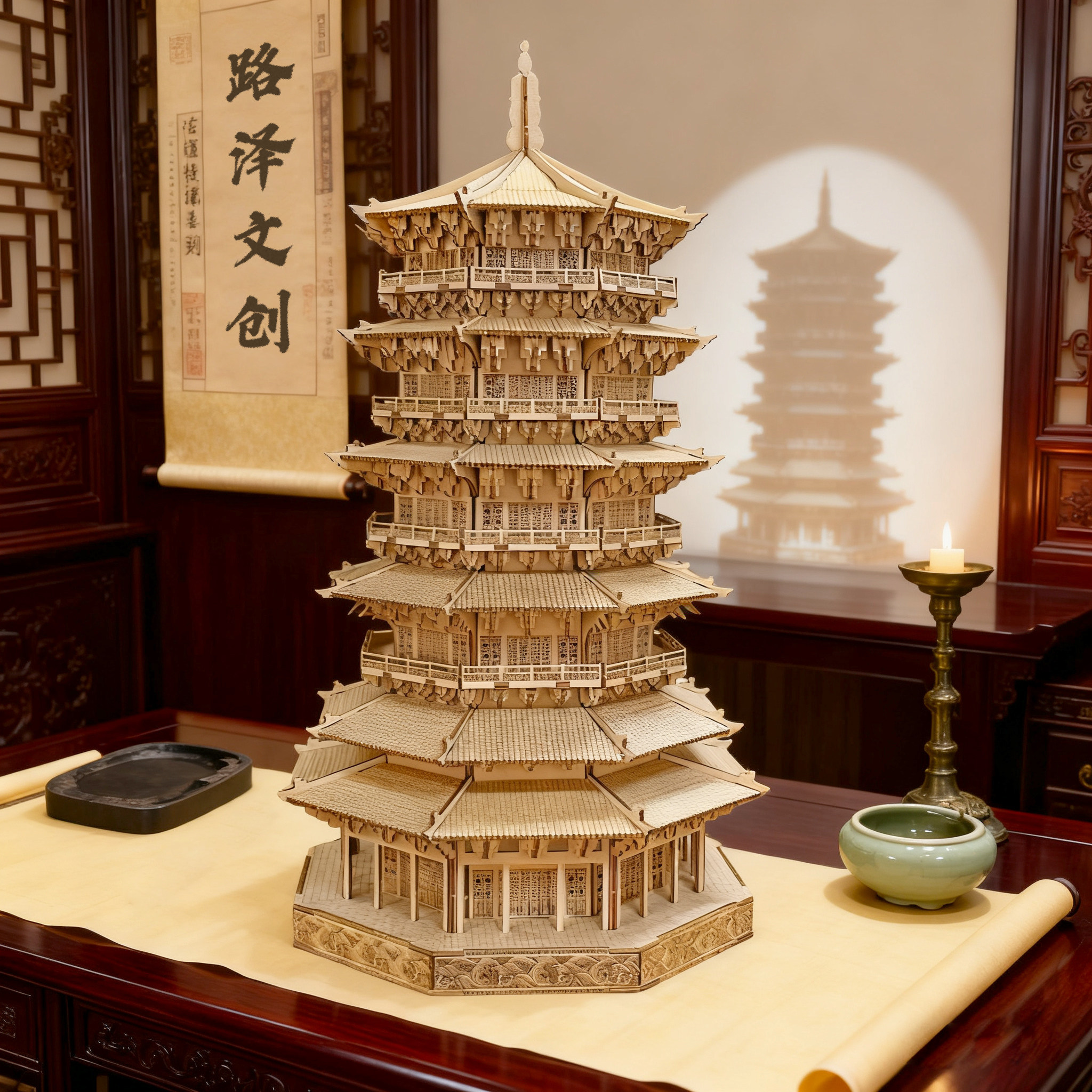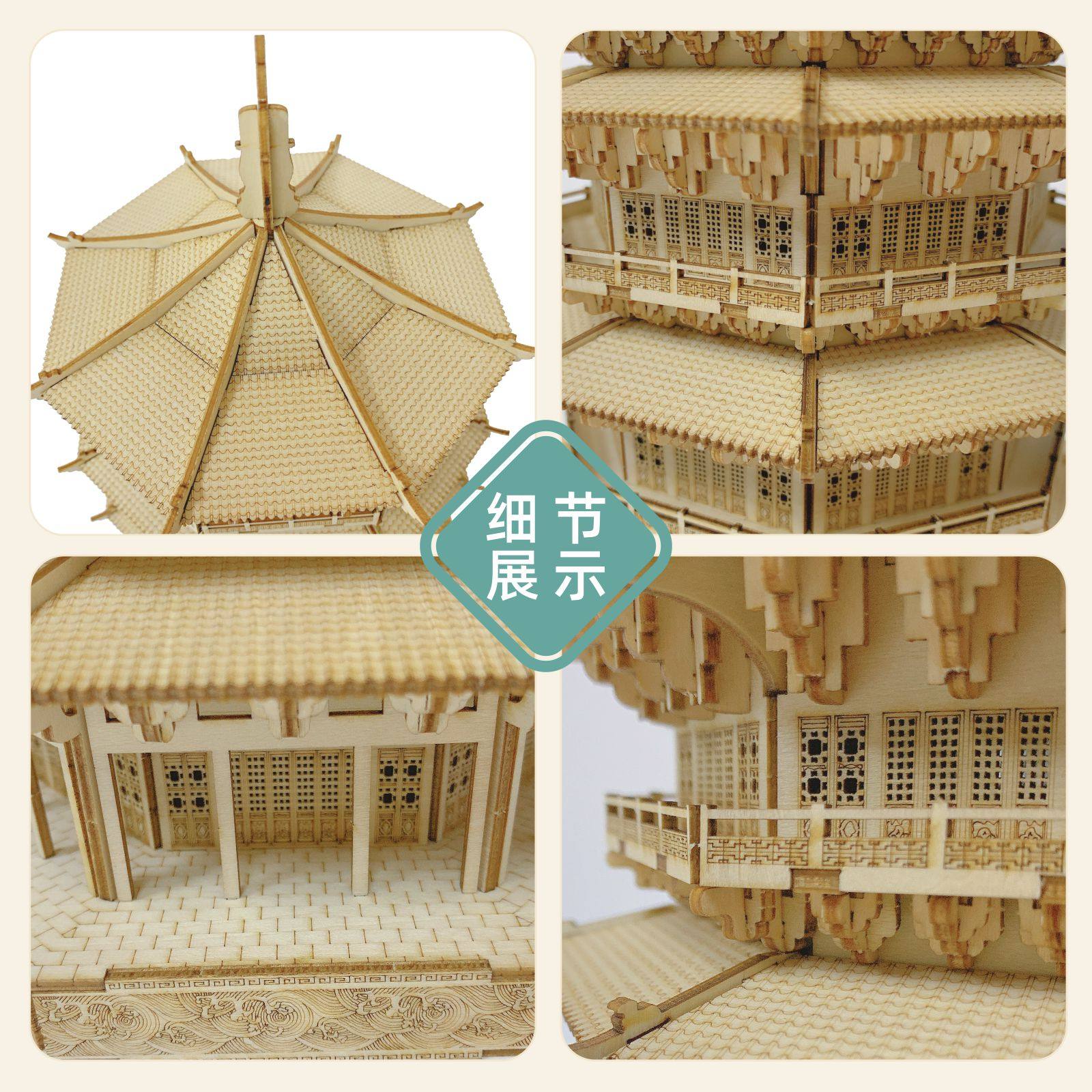 山西应县木塔中式微缩古建筑榫卯积木拼装模型立体儿童拼图摆件