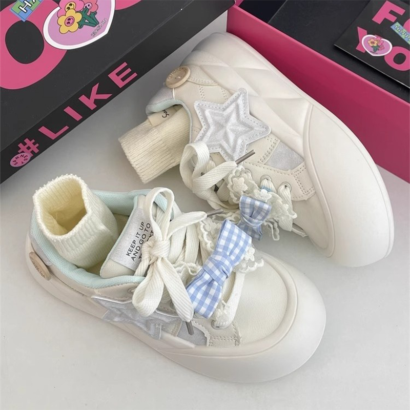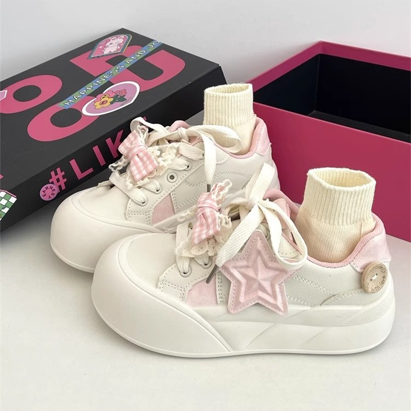 女童鞋子厚底增高蝴蝶结圆头小白鞋2026春秋新款学生爆款软底板鞋