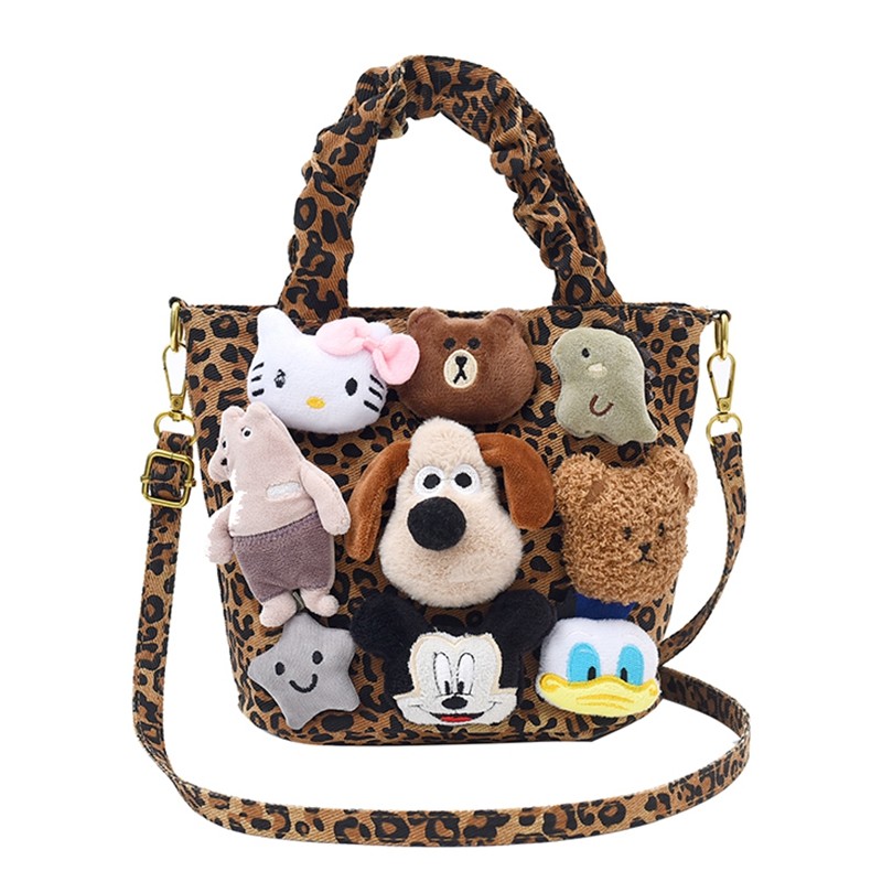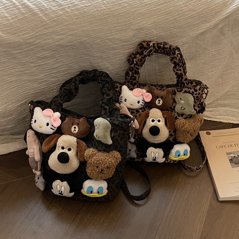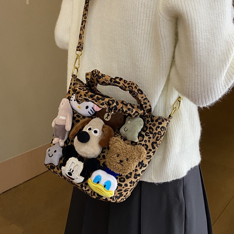 超火小众豹纹帆布包包女款时尚流行百搭斜挎包可爱日常手提托特包