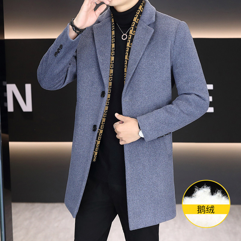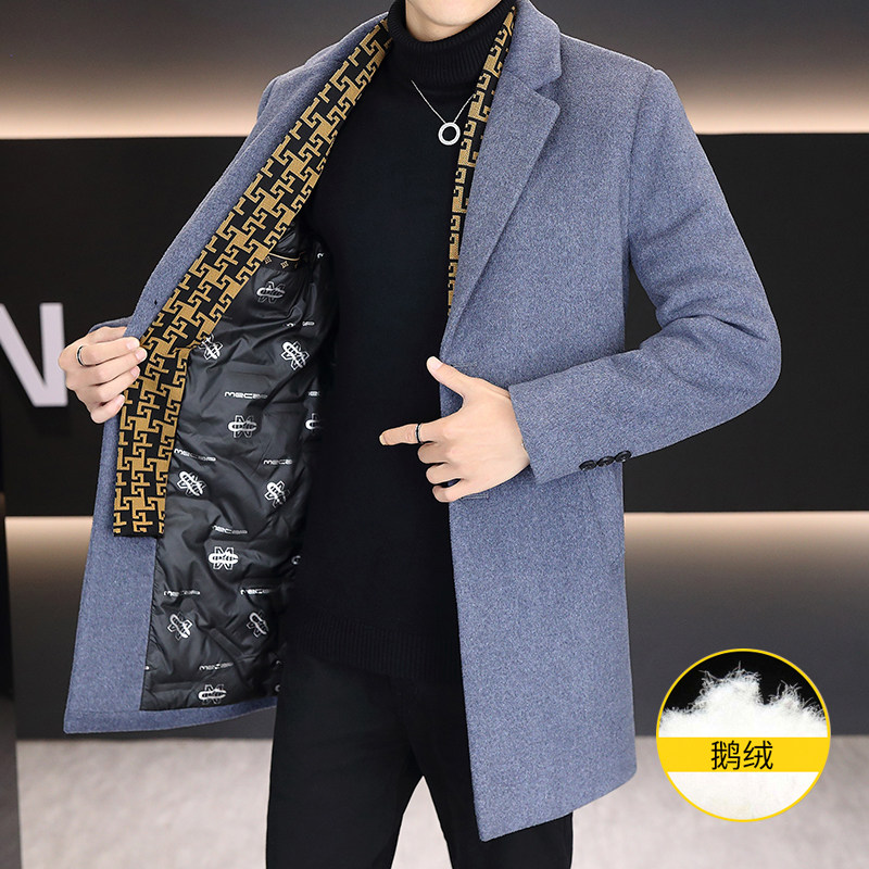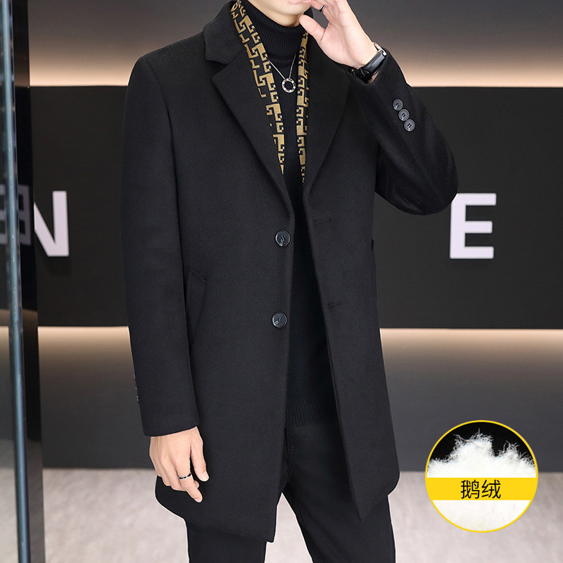 冬季青少年加厚毛呢外套12岁男孩14中学生15大童中长款呢子羽绒服