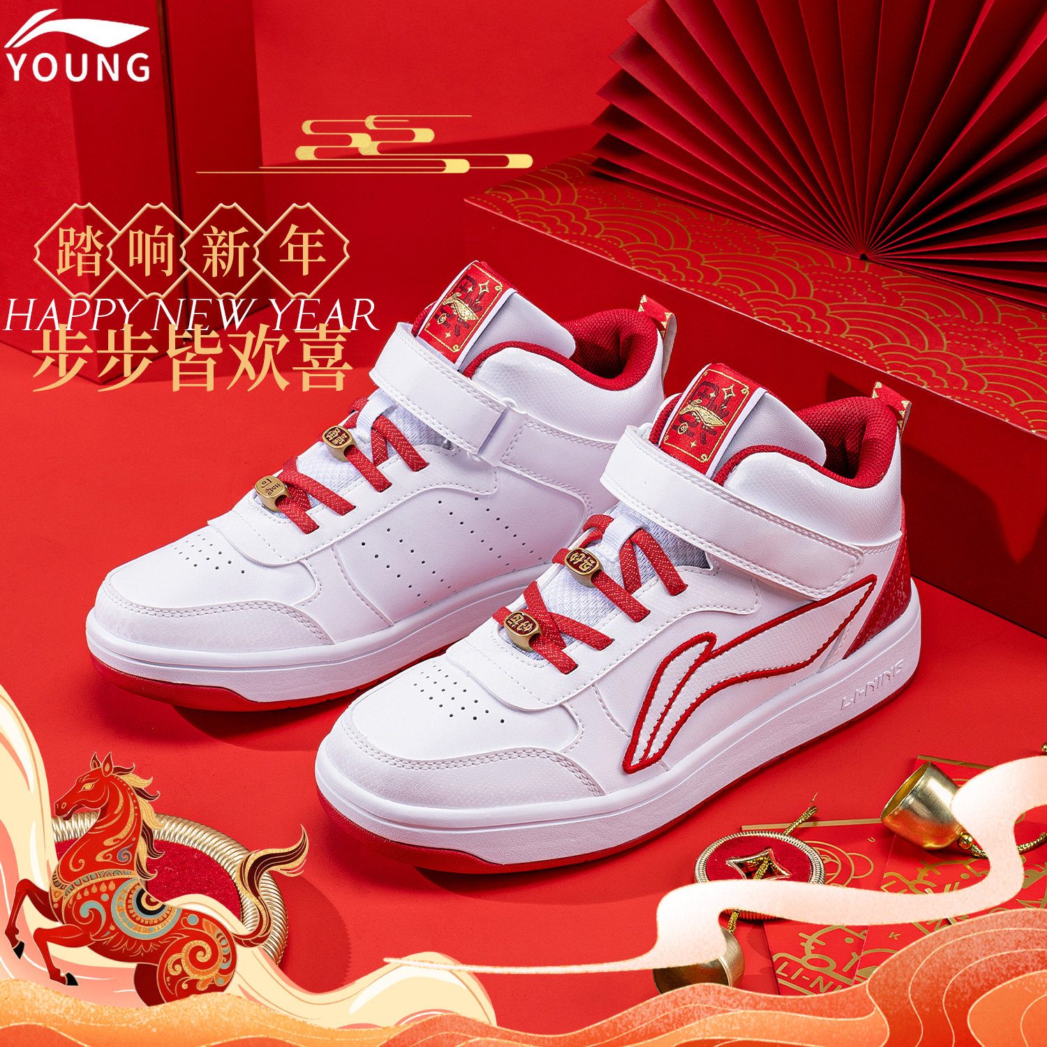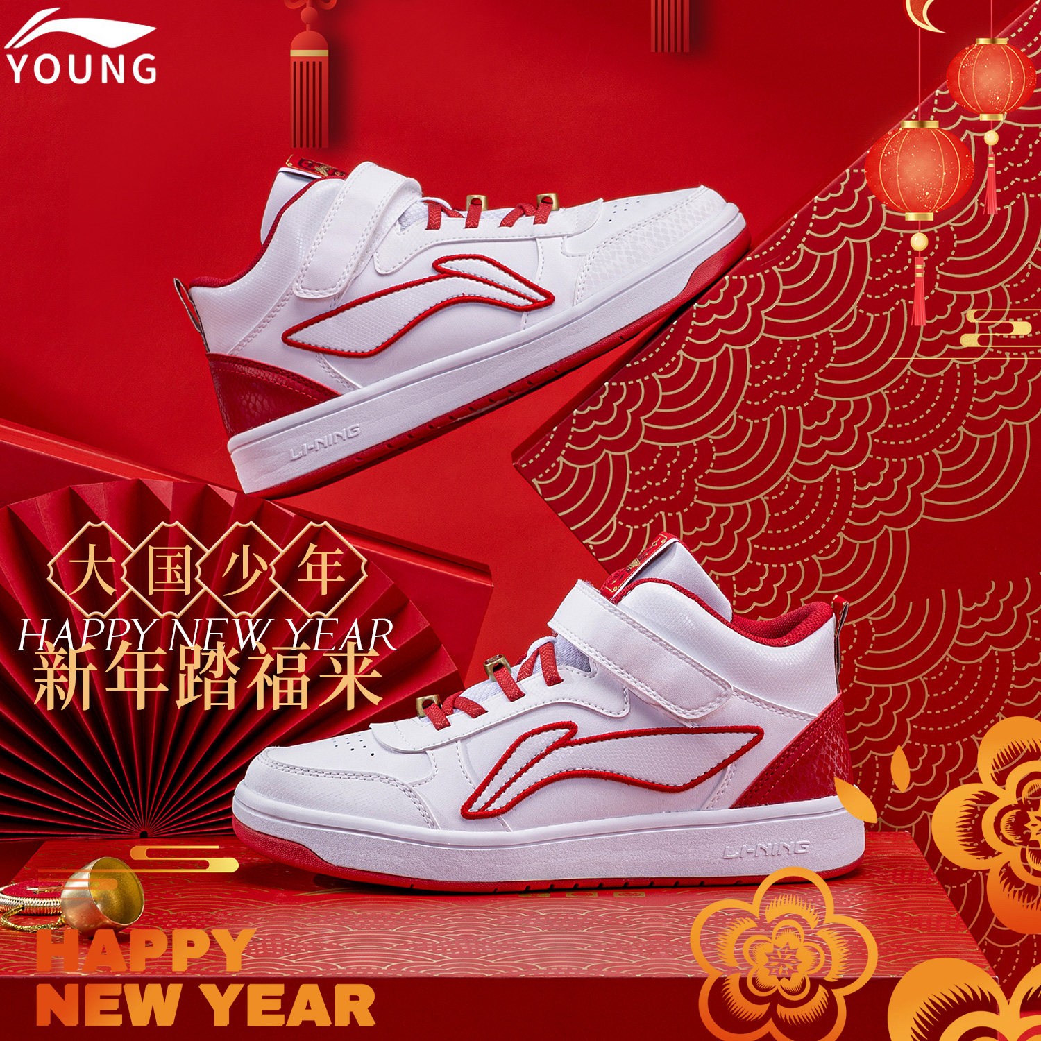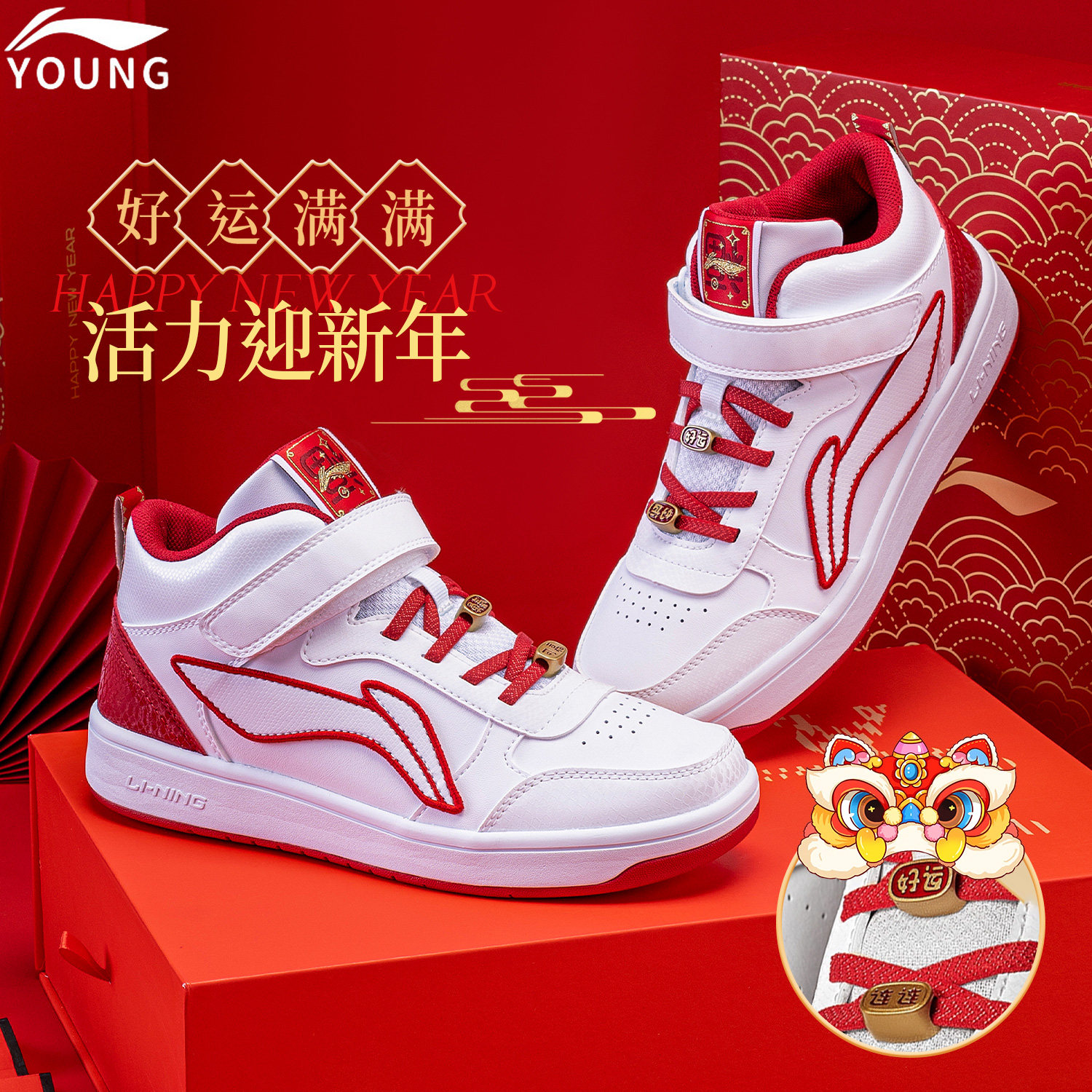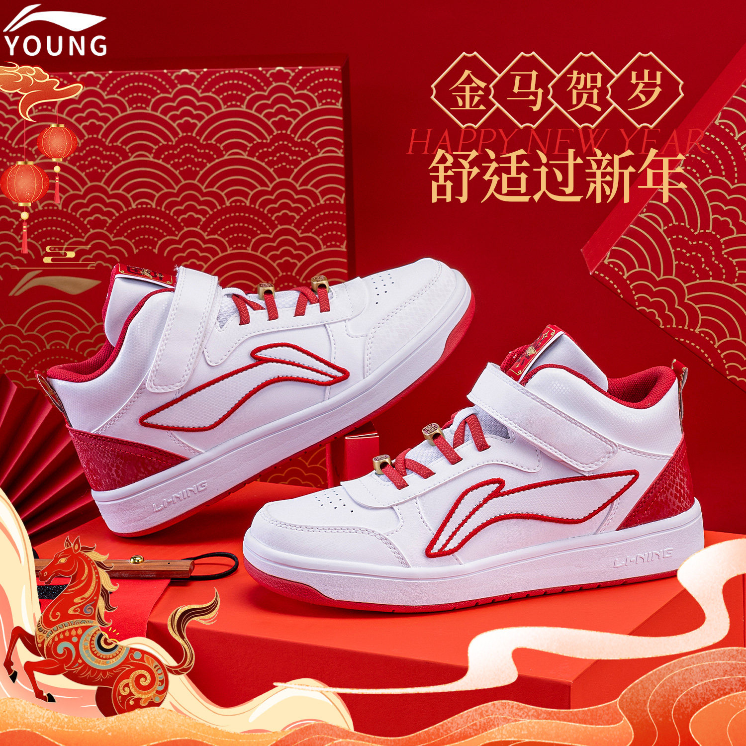 李宁官方旗舰正品儿童休闲鞋男童新年新款皮面减震青少年运动板鞋