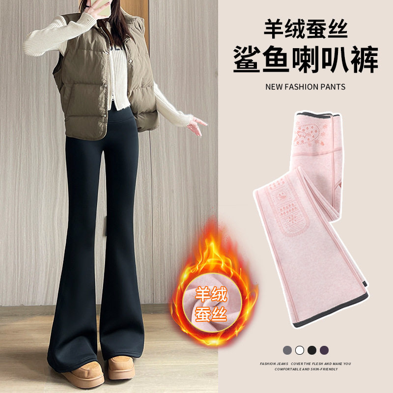 微喇裤女冬季加绒裤子白色健身瑜伽高腰收腹提臀小个子喇叭鲨鱼裤