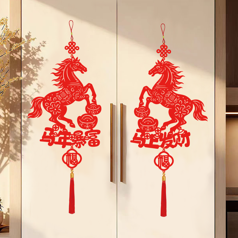 马年福字挂件2026春节过年生肖挂饰新年装饰玄关客厅墙面剪纸挂饰