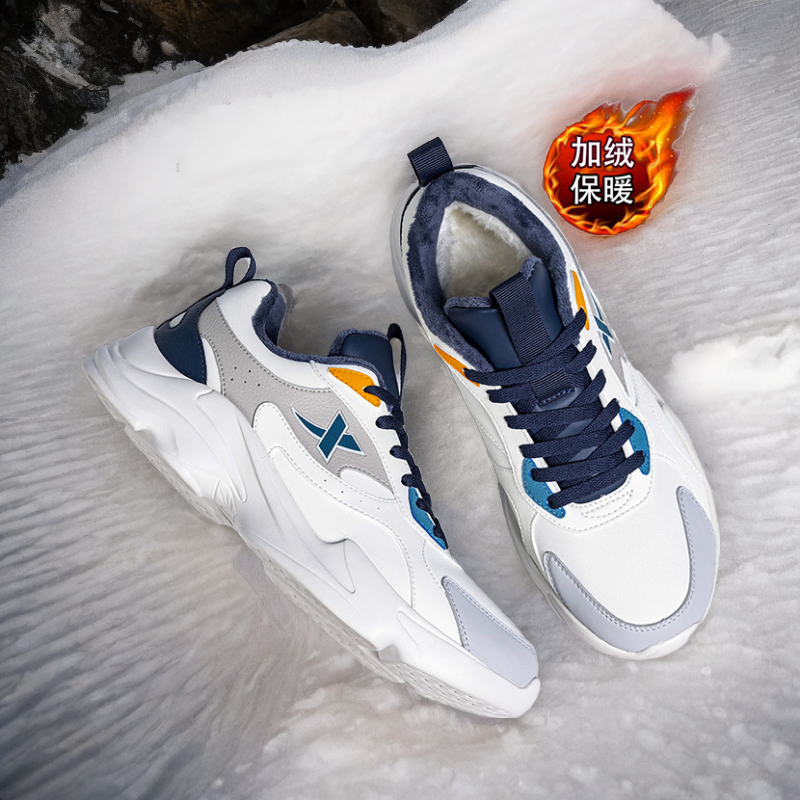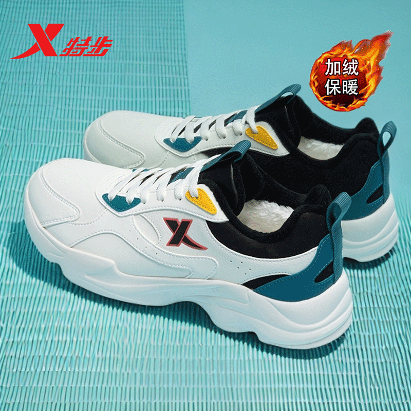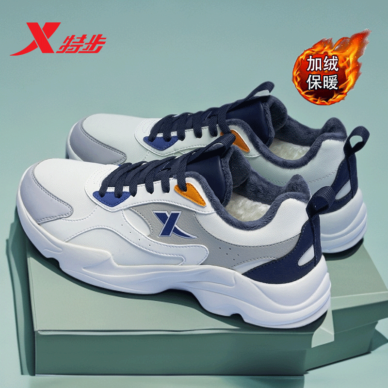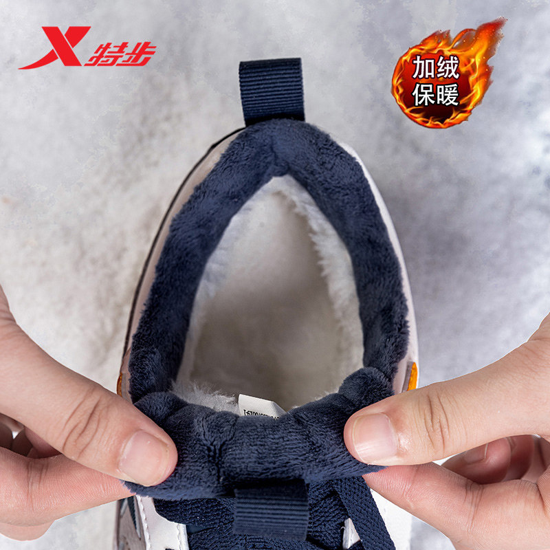 特步棉鞋男鞋冬季运动鞋男款加绒保暖加厚防寒皮面休闲鞋子男冬季