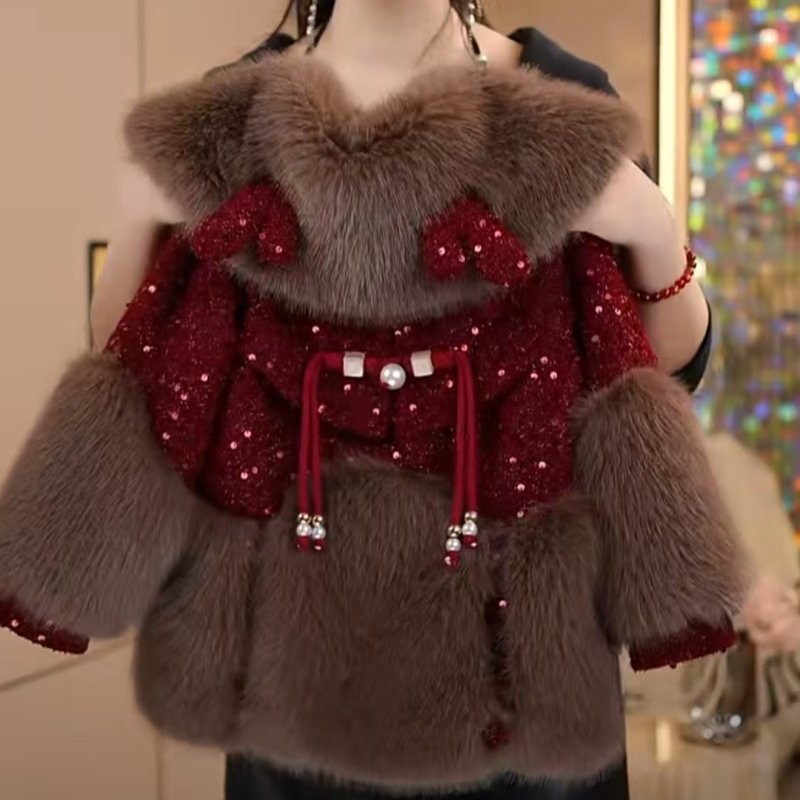 女童外套冬装2026新款洋气儿童时髦亮片加绒毛毛衣小女孩冬季衣服