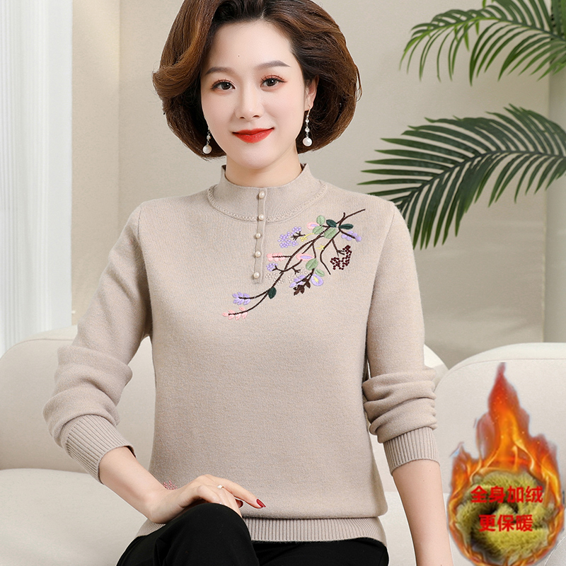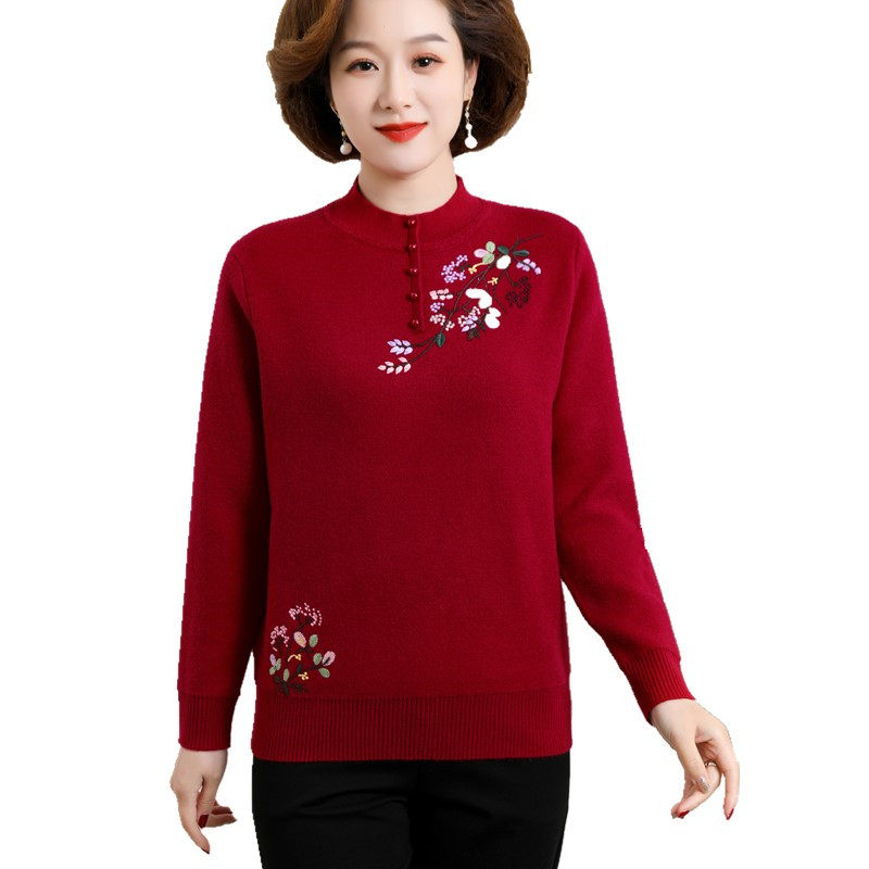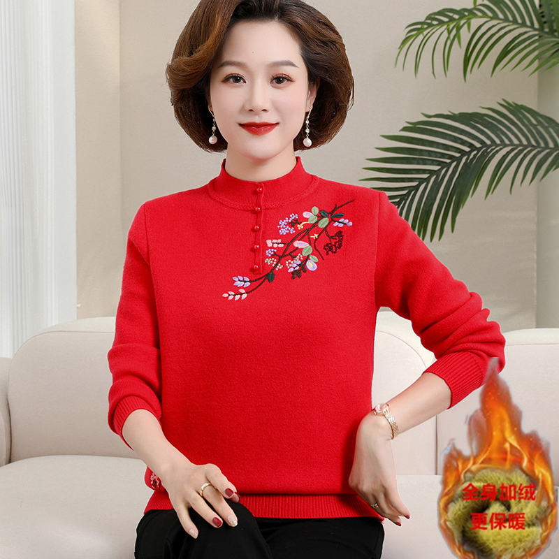 妈妈冬装打底衫本命年红色毛衣中老年女装宽松新款上衣服加绒加厚