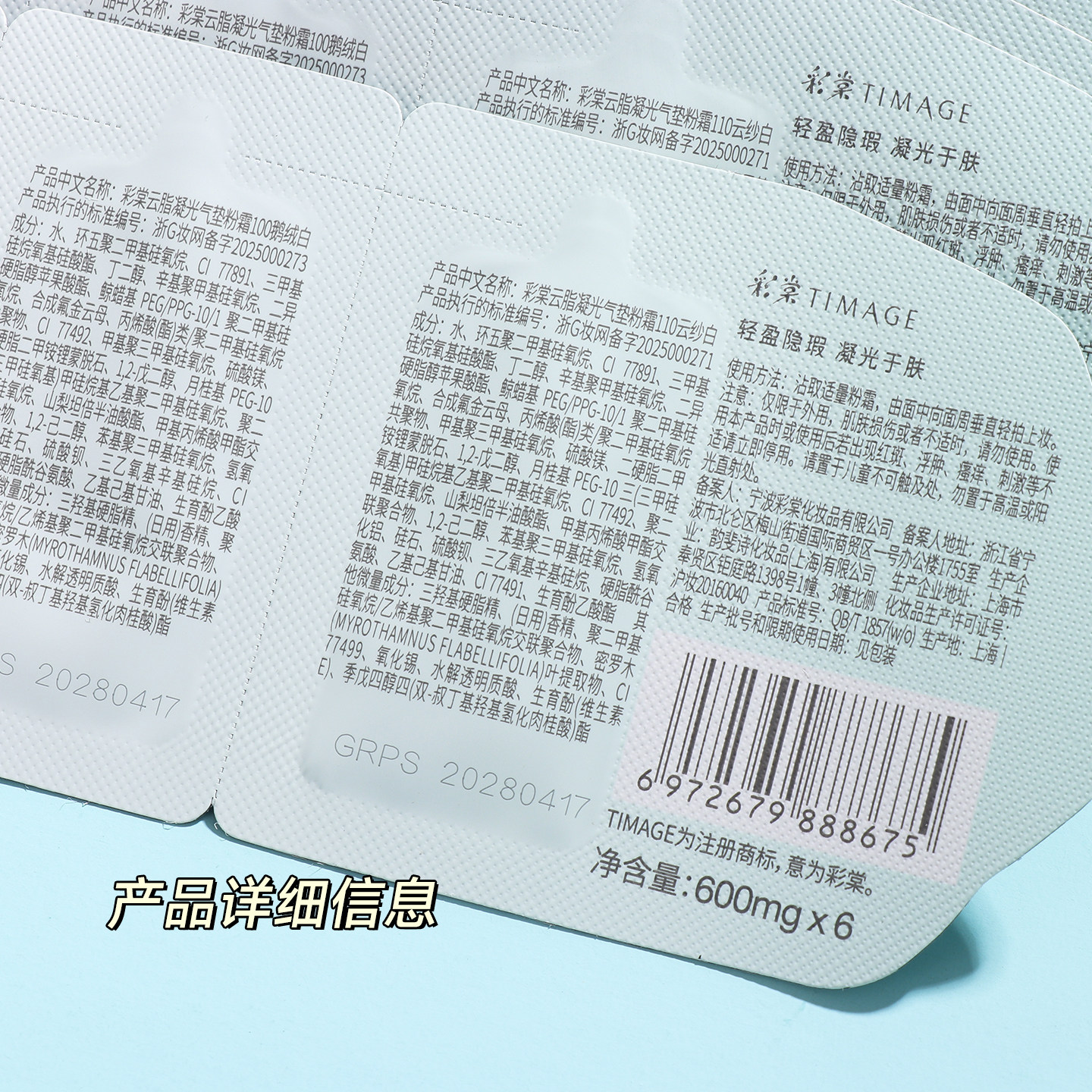 彩棠双生气垫小样试色卡试用装奶皮干皮遮瑕持久不脱妆官方正品