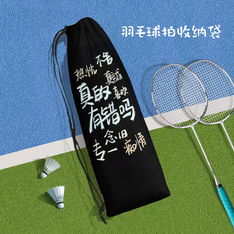 个性励志文字羽毛球拍收纳袋定制高颜值抽绳便携束口保护运动包