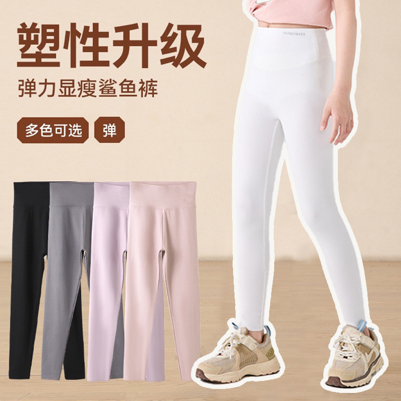 鲨鱼裤女童打底裤春秋季薄款夏外穿中大儿童学生白色瑜伽裤冬加绒