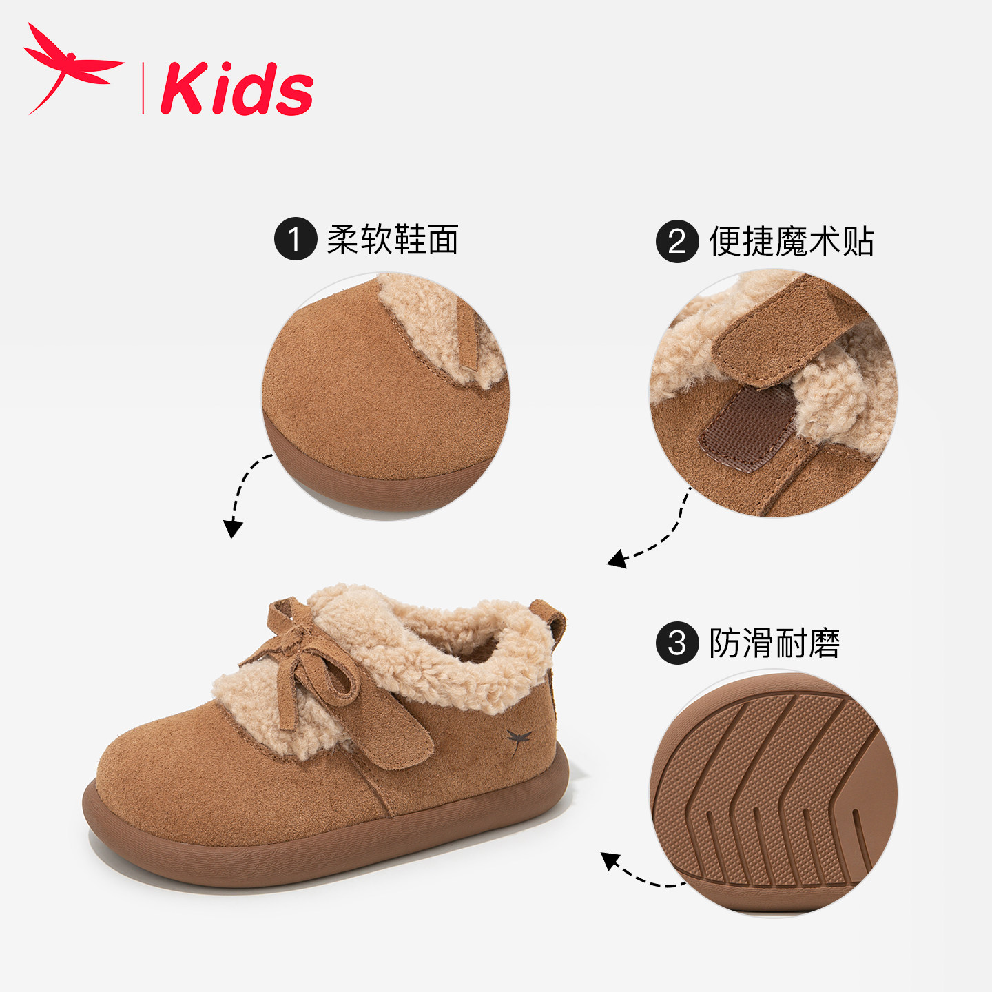 红蜻蜓女童鞋子儿童雪地靴勃肯棉鞋加绒2026新款冬季大童女孩豆豆