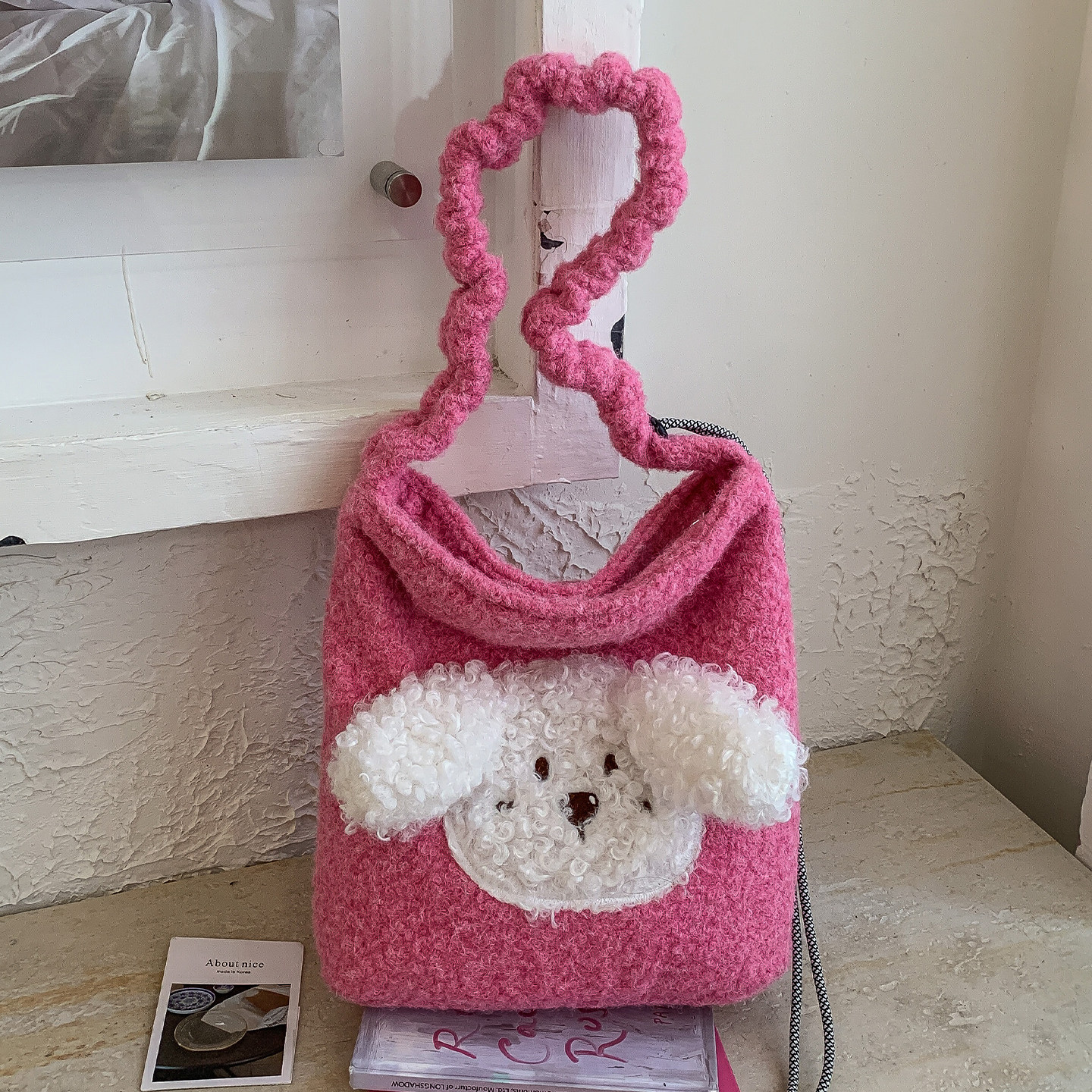 羊羔毛绒绒包包女款2026新款时尚超火可爱单肩包大容量斜挎水桶包