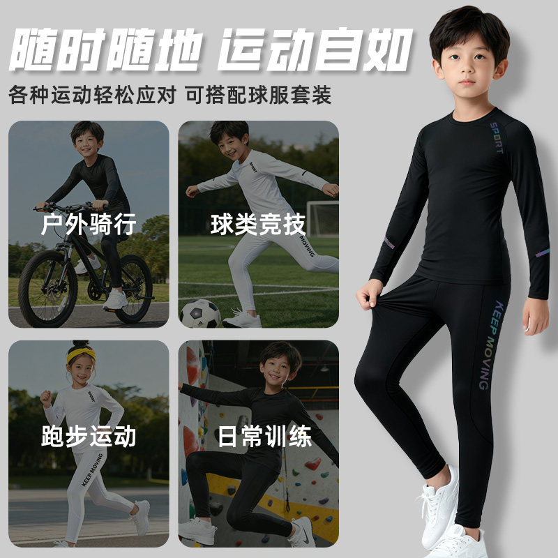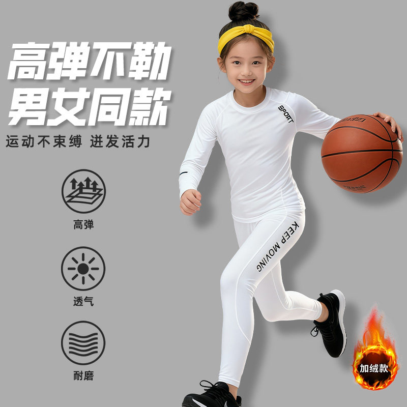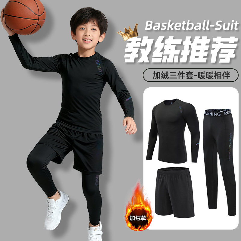 儿童加绒紧身衣训练服男女健身速干衣秋冬篮球足球打底衣运动套装