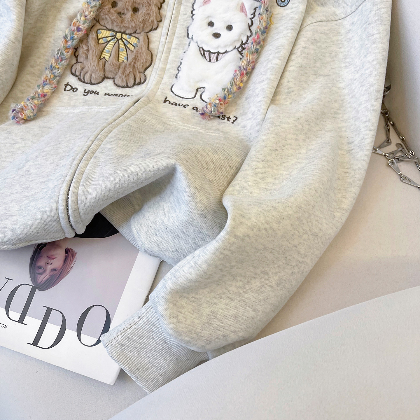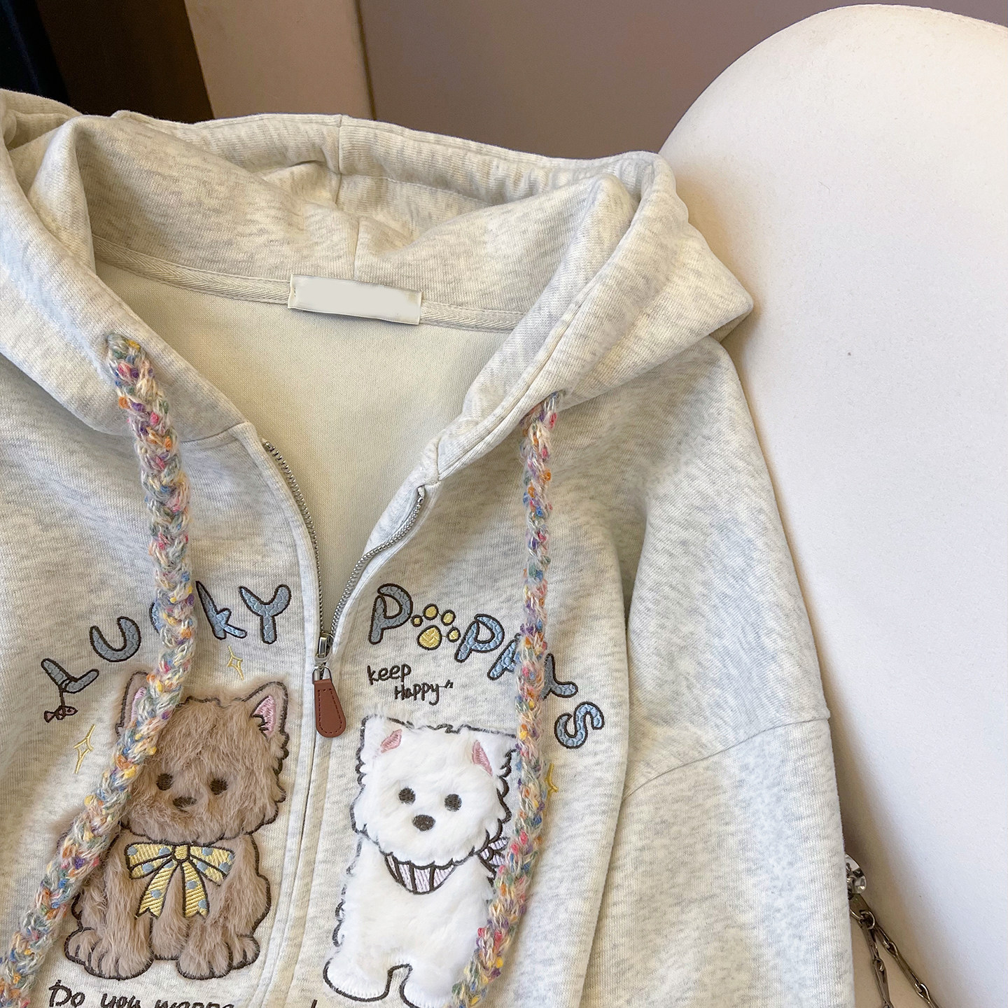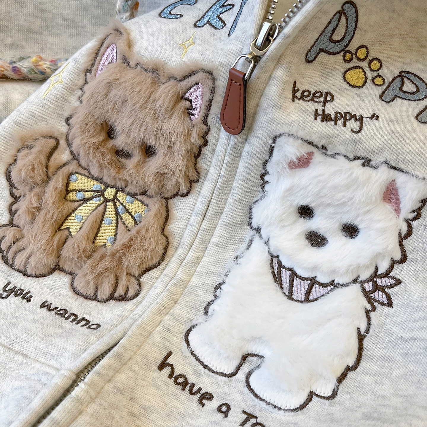 小C家 可爱毛绒小狗刺绣卫衣女款2026新款春韩系穿搭宽松连帽外套