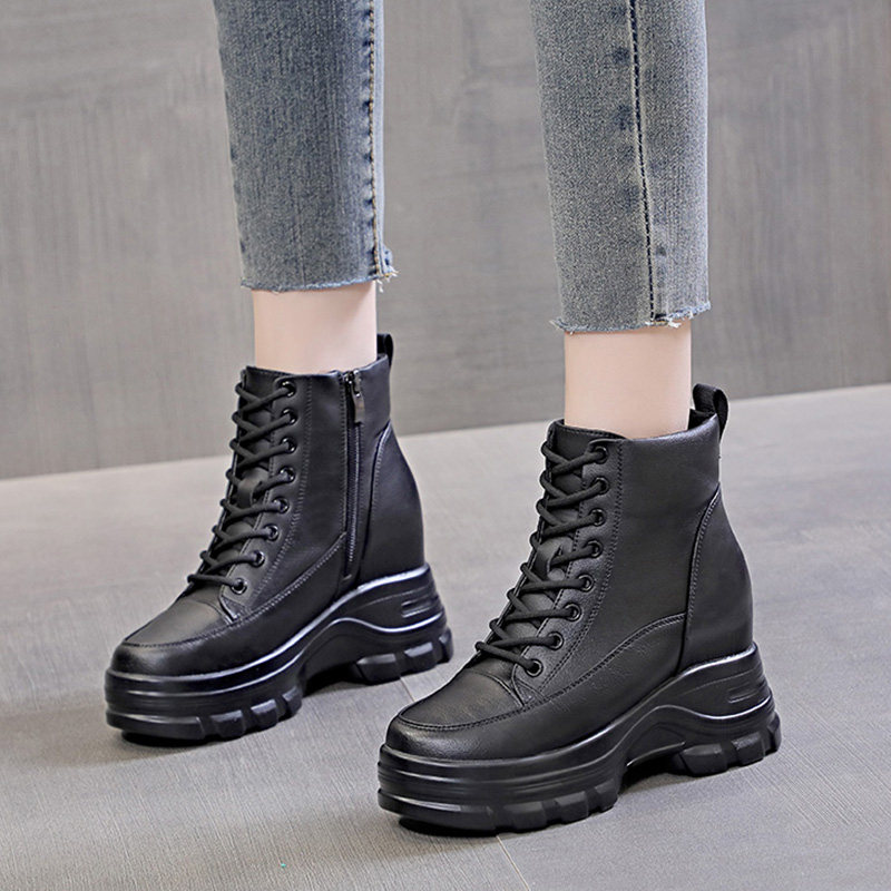 小个子内增高8cm马丁靴女2025新款真皮厚底秋冬加绒保暖短靴女鞋