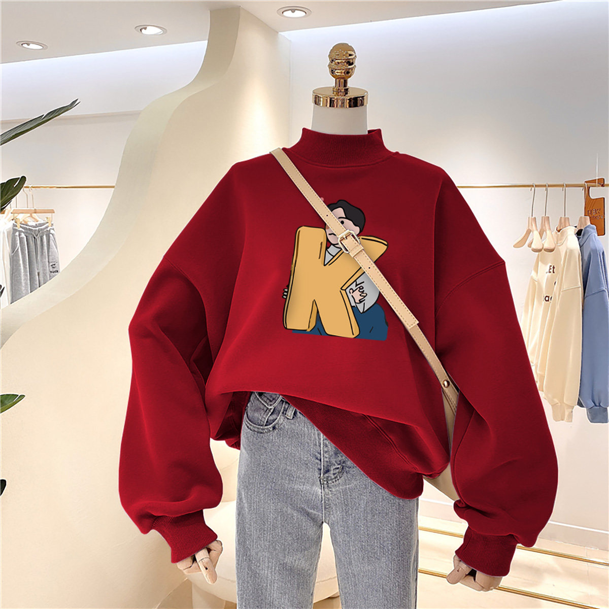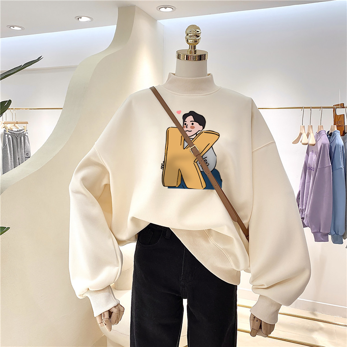 半高领大码卫衣女款2026新款秋冬胖mm加绒加厚宽松超好看减龄上衣