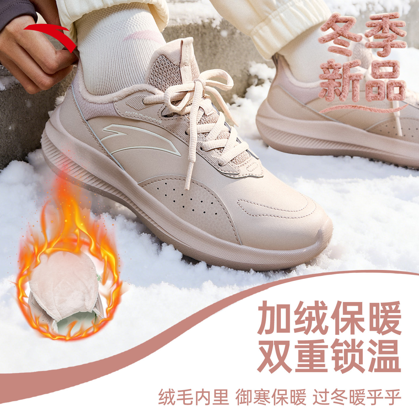 安踏运动鞋女款2026新款皮面防水运动女鞋冬季跑步鞋女百搭老爹鞋