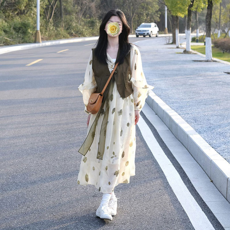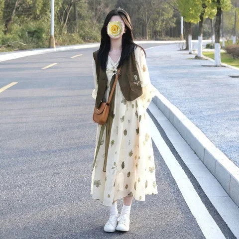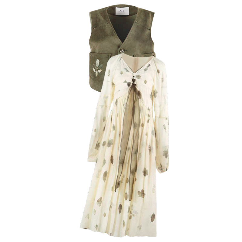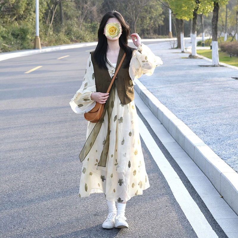 孕妇连衣裙套装时尚洋气时髦中长款碎花裙子两件套2026新款春秋女