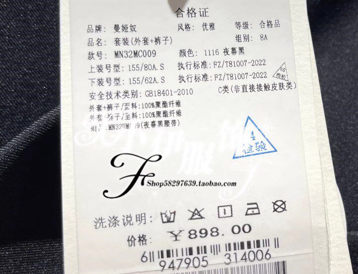 曼娅奴正品2023年新款冬装女装职业时尚外套+裤子套装MN32MC009