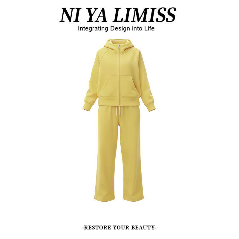 ROUMIKL休闲运动服套装女2025新款冬装连帽卫衣外套宽松显瘦阔腿