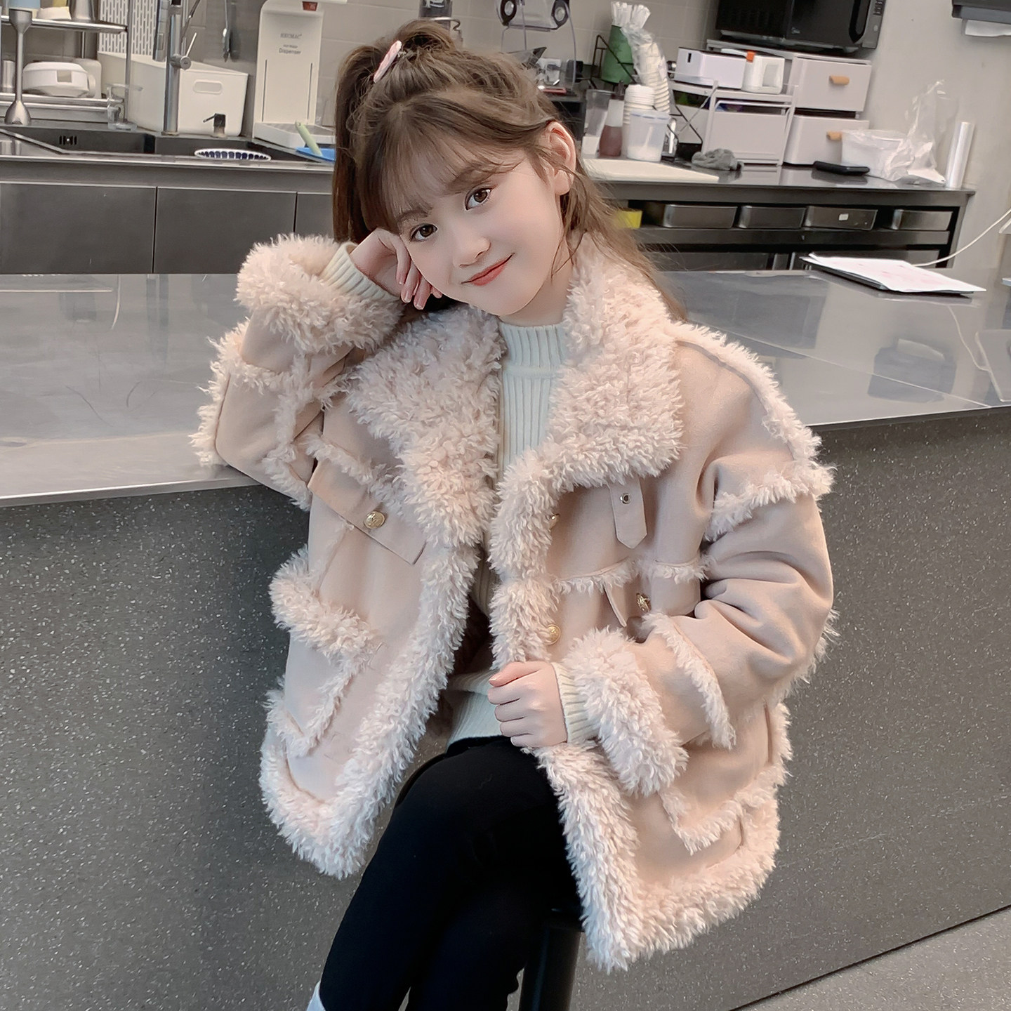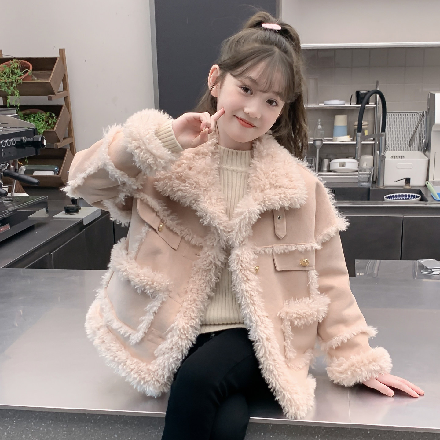 女童外套2026新款秋冬装儿童网红洋气时髦一体绒加厚女孩爆款大衣