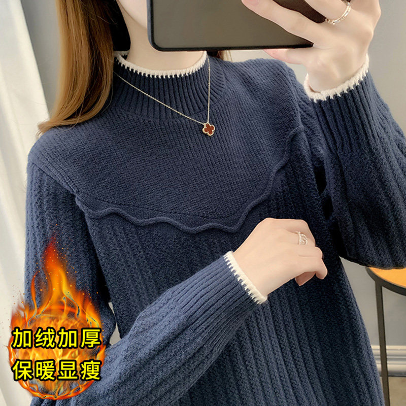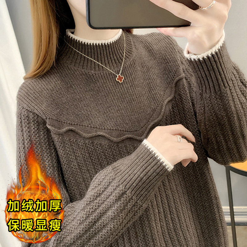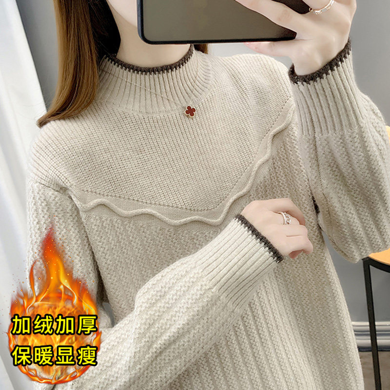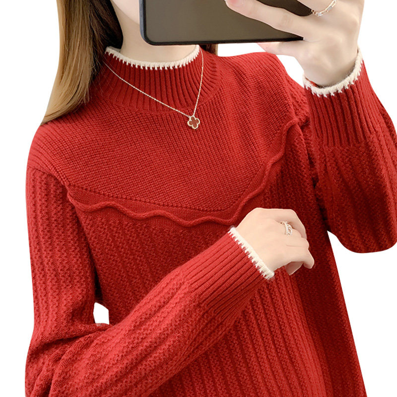 毛衣女款2025新款冬季加绒加厚半高领打底衫女秋冬内搭红色上衣女