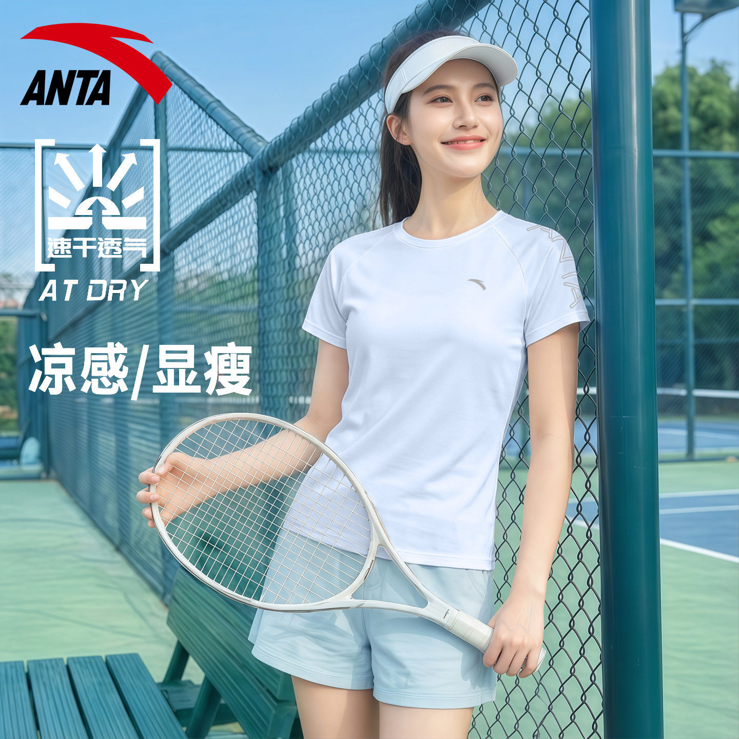 安踏透气短袖女款2026春季新款吸湿排汗t恤运动收腰修身显瘦上衣