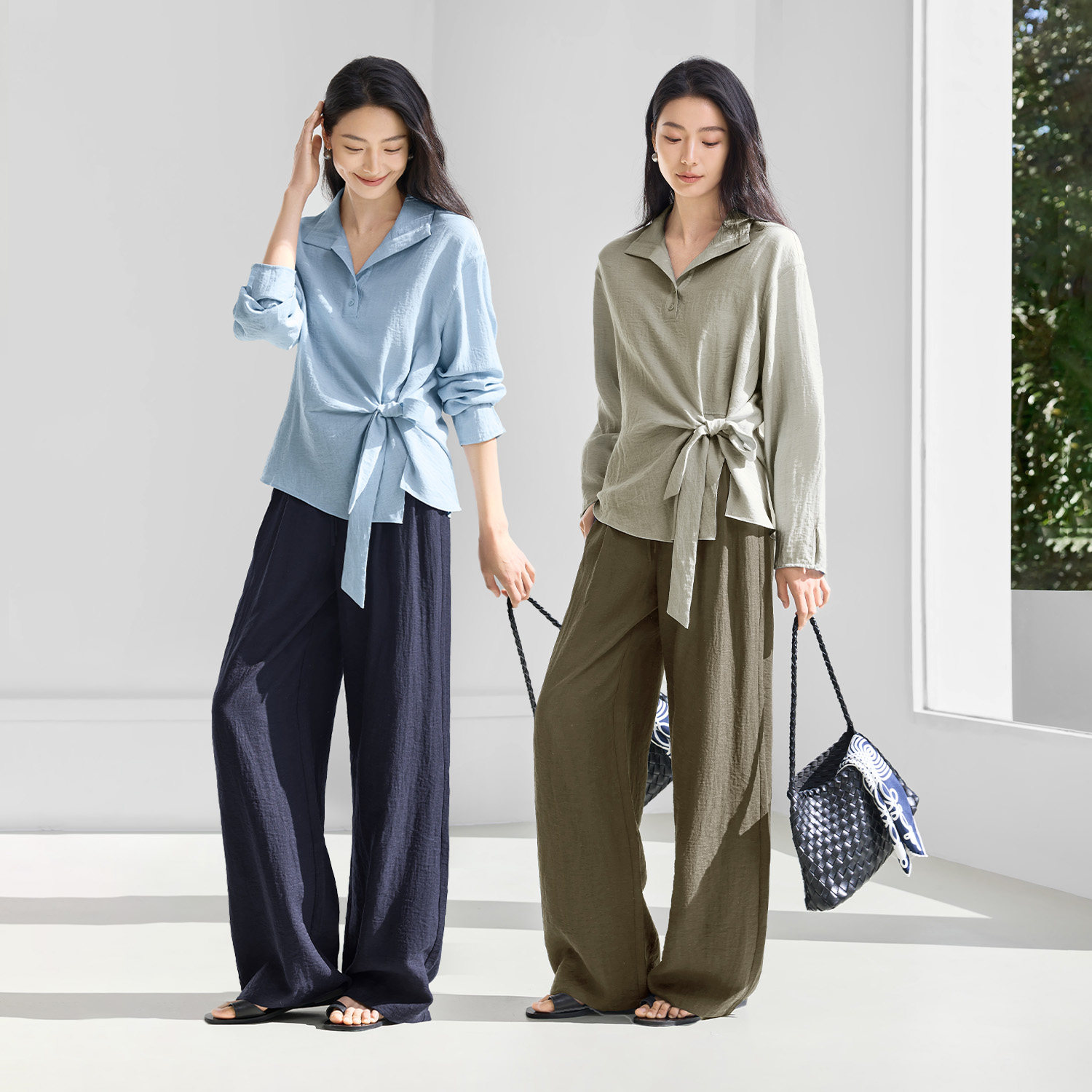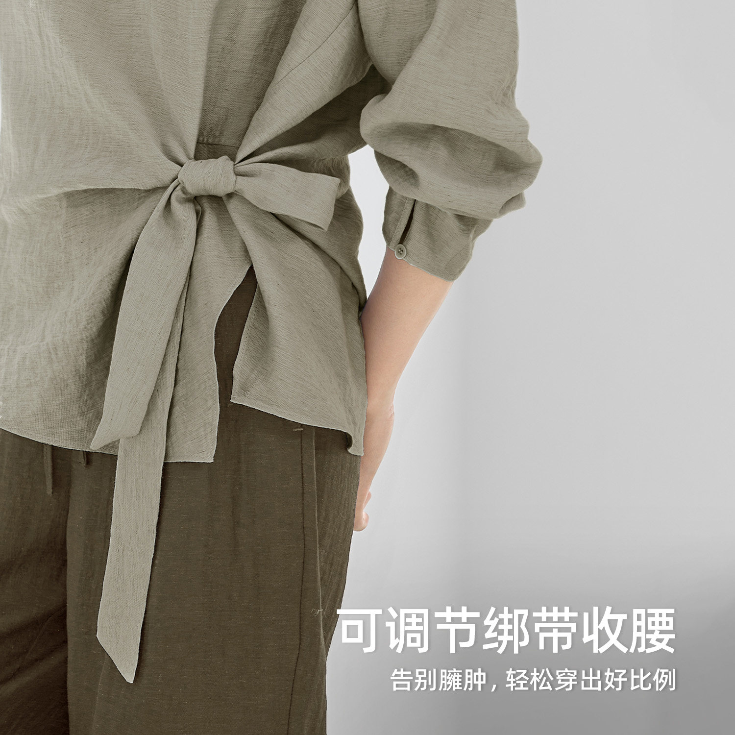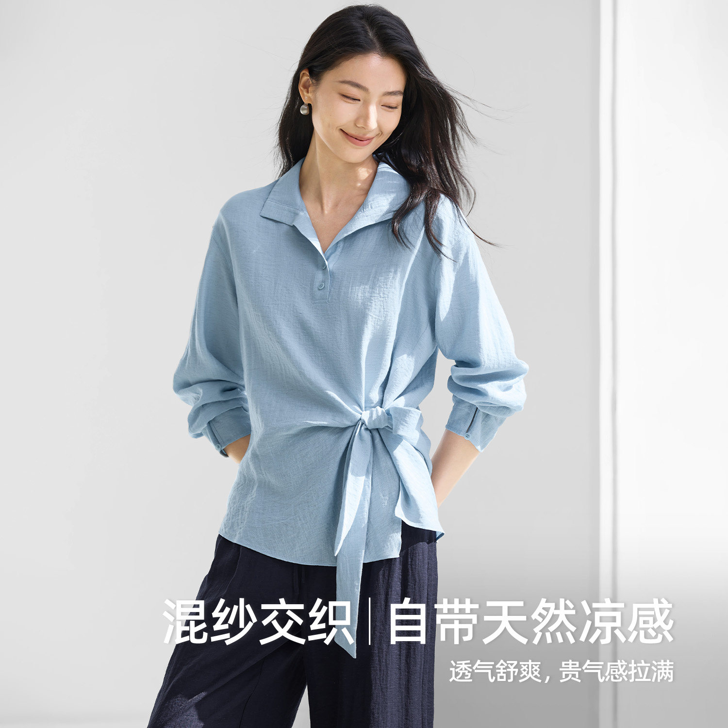 IHIMI海谧侧腰打结显瘦长袖衬衫女款春季气质通勤百搭设计感上衣