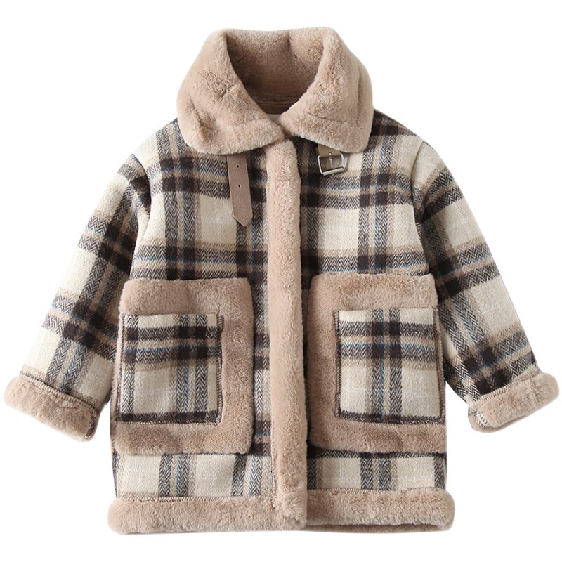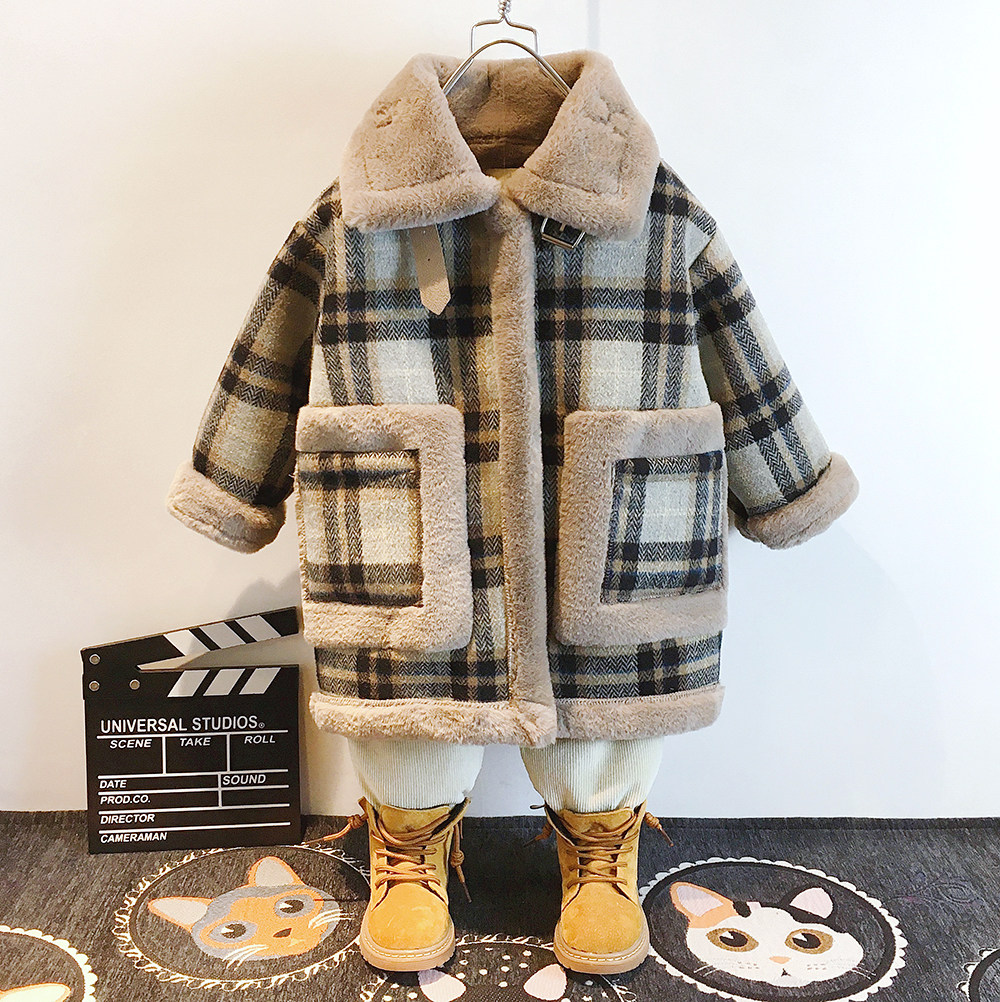 儿童加绒冬天呢大衣 中小童装冬新款加厚外套男女宝宝中长款潮衣