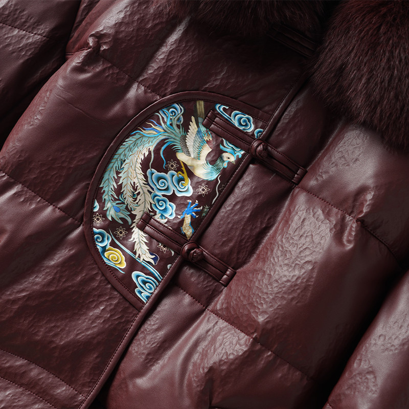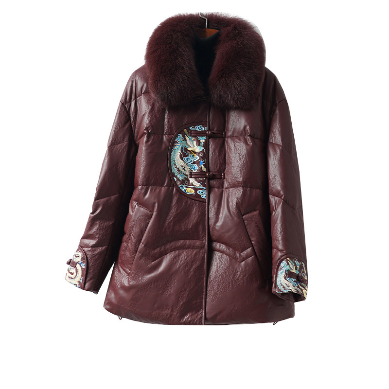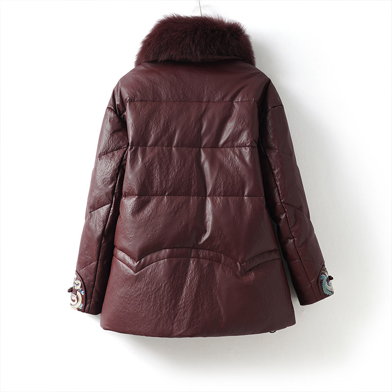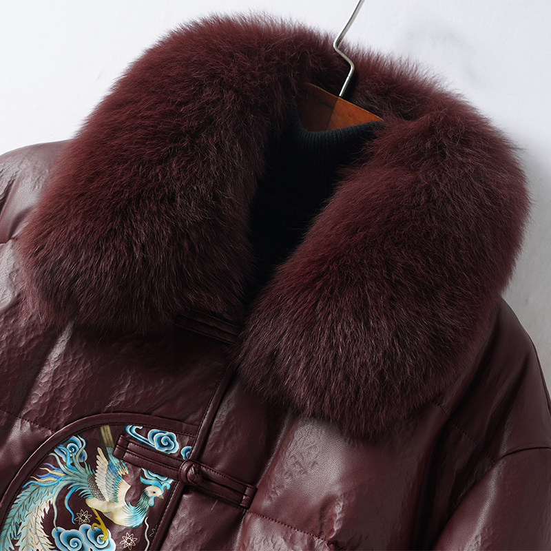 海宁真皮衣女常规狐狸毛领新中式盘扣外套90白鸭绒春秋绵羊皮羽绒