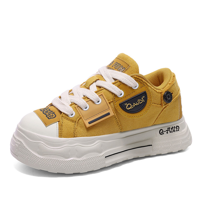 奇安达原创帆布鞋女款5CM厚底增高板鞋学生面包鞋男情侣休闲鞋潮
