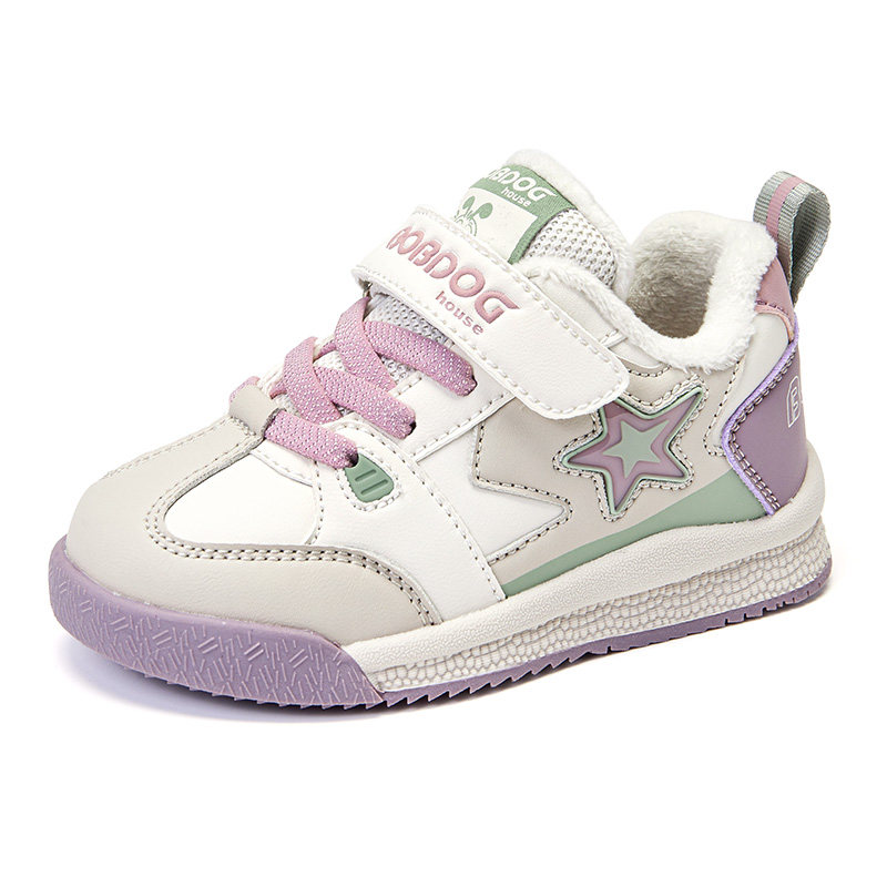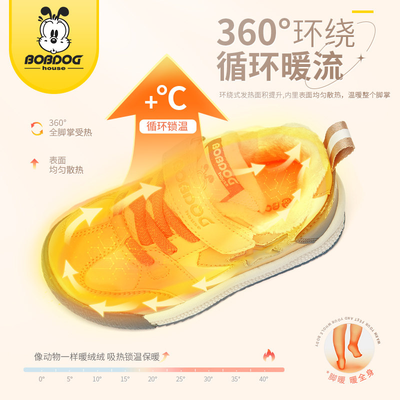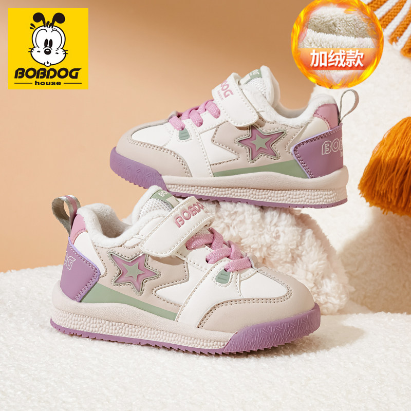 巴布豆童鞋女童运动鞋冬季新款加绒皮面二棉儿童1-6岁小童机能鞋