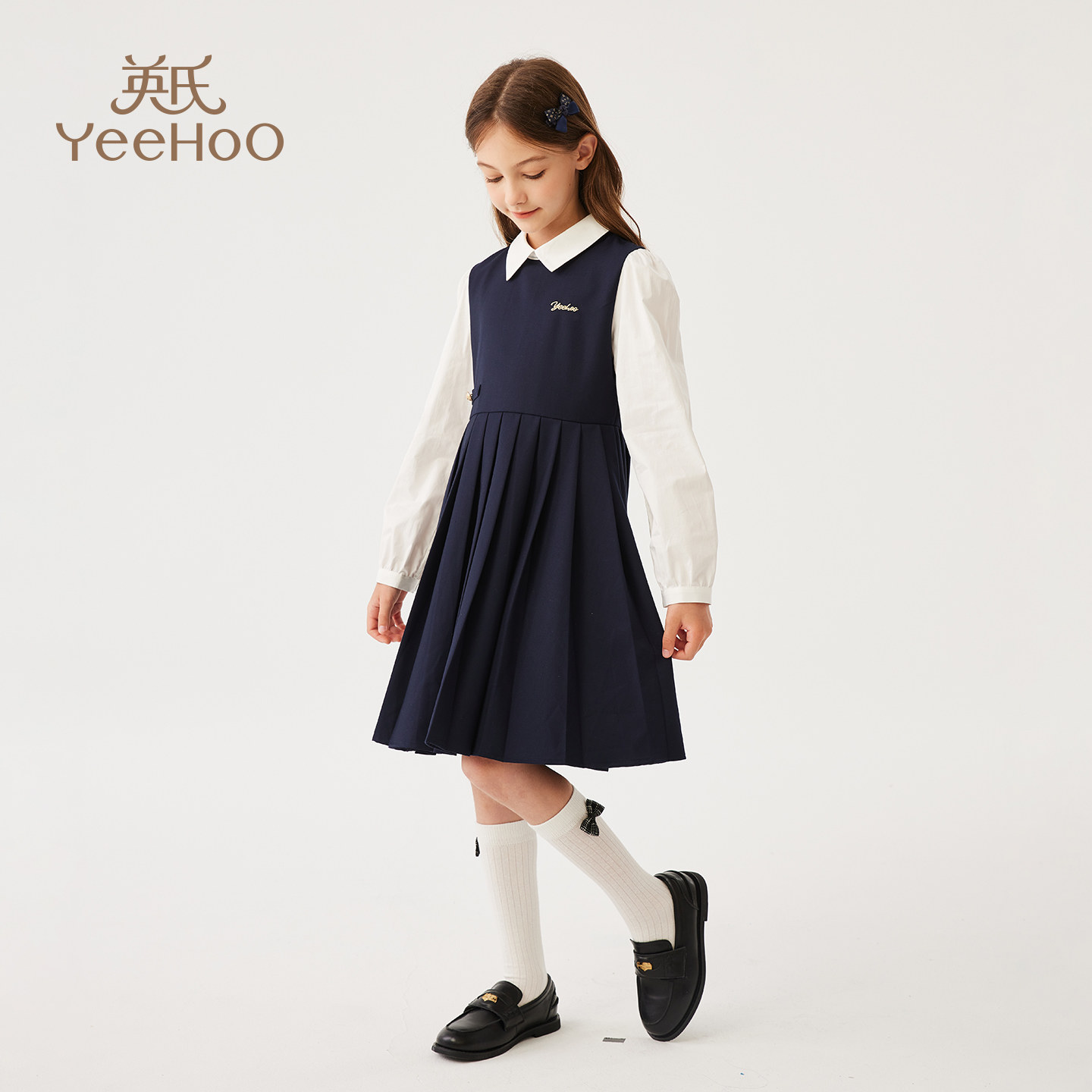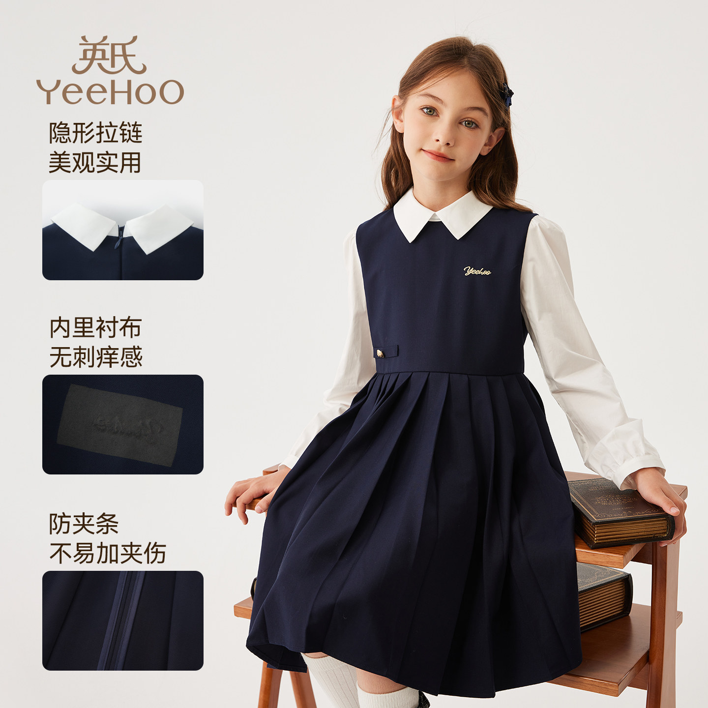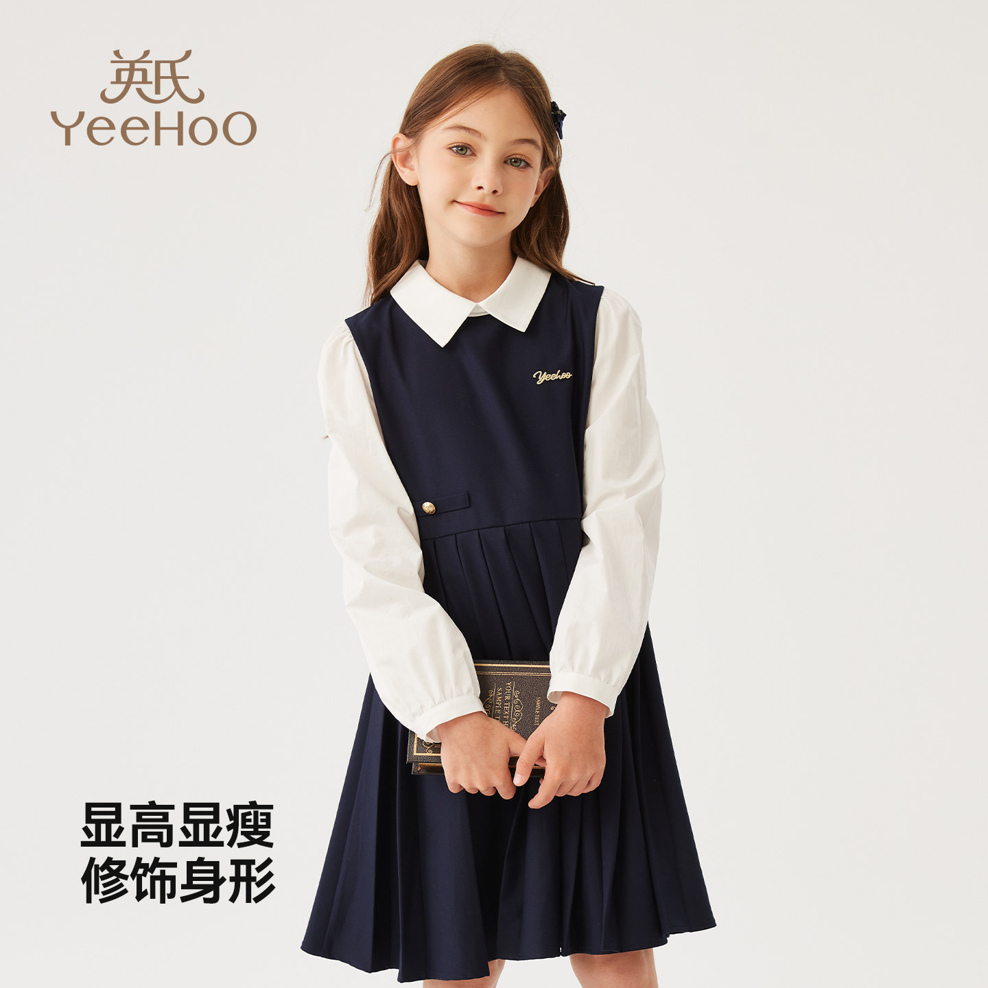 英氏女童学院风连衣裙2026春秋新款中小童洋气气质长裙高级感裙子