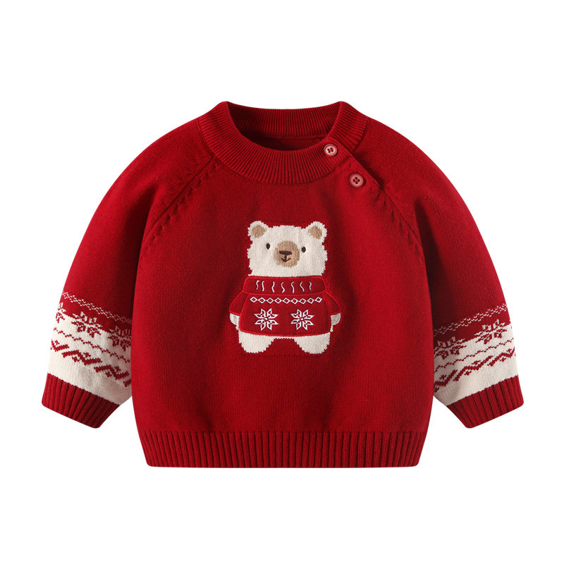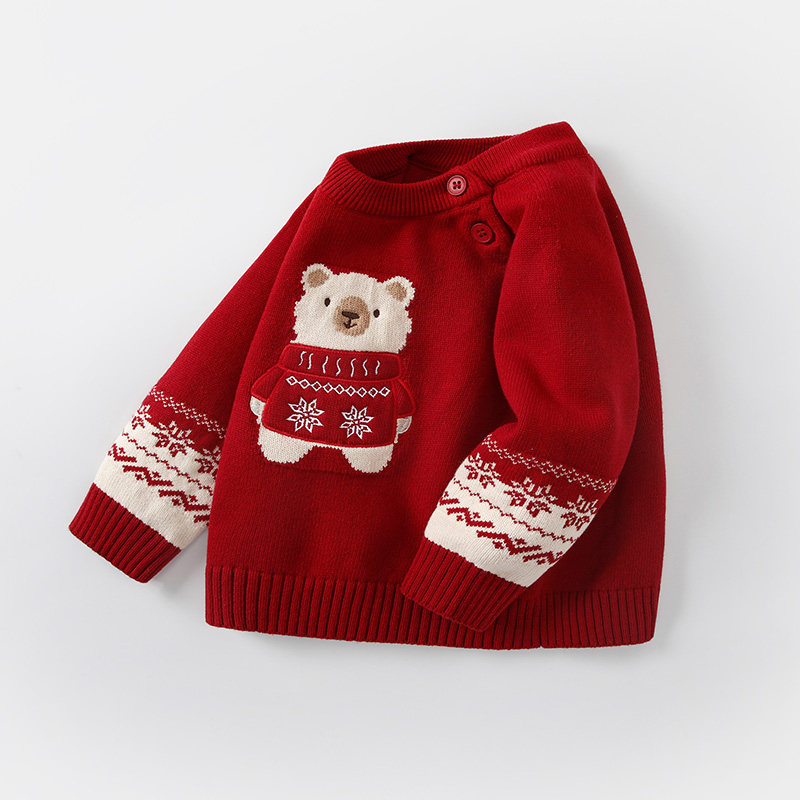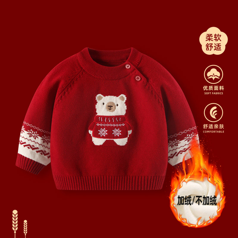 男童毛衣冬装婴儿红色喜庆过年新年拜冬年服衣服宝宝女童加厚上衣